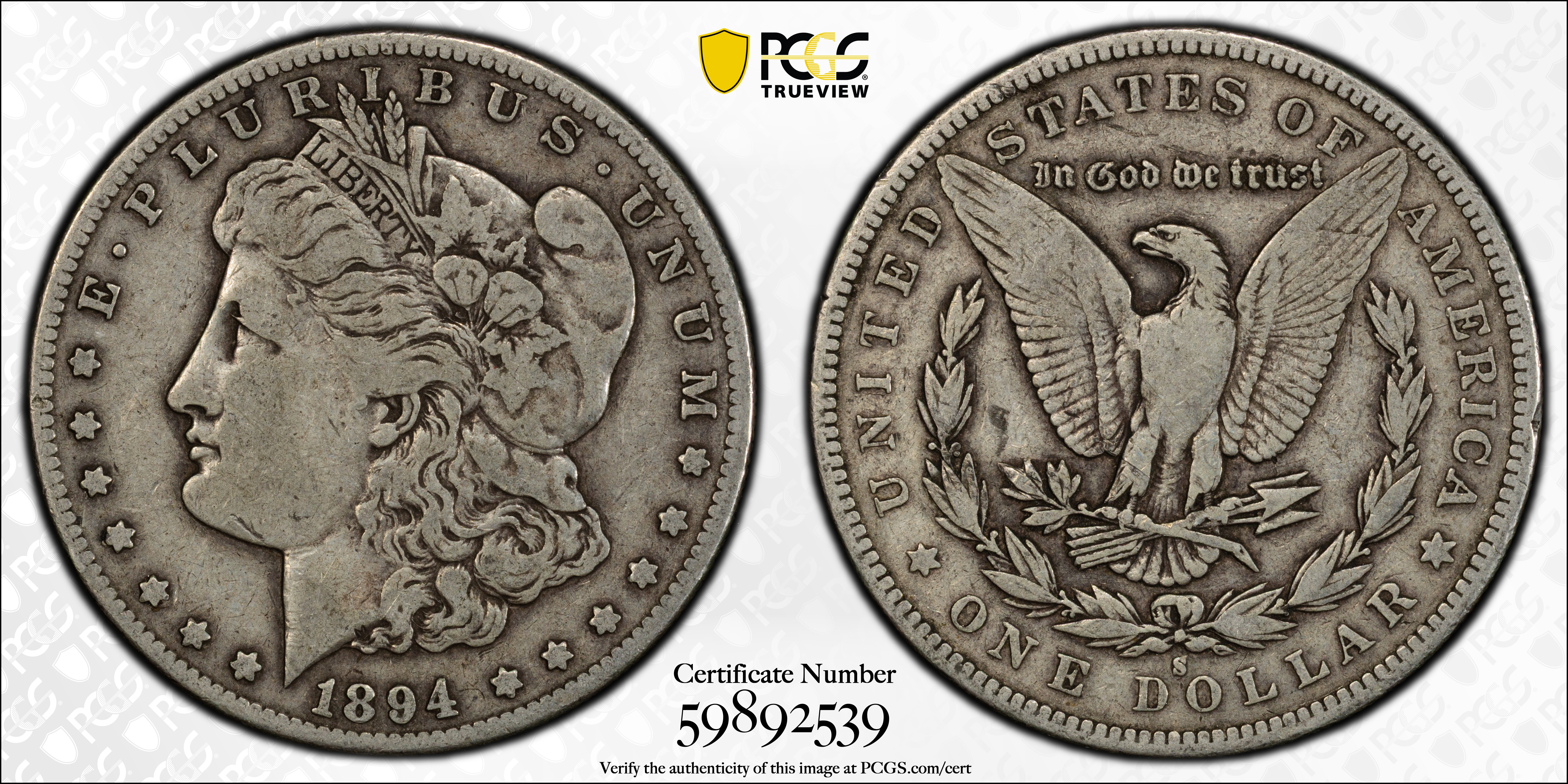 1894-S $1 F15 Certification #59892539, PCGS #7232