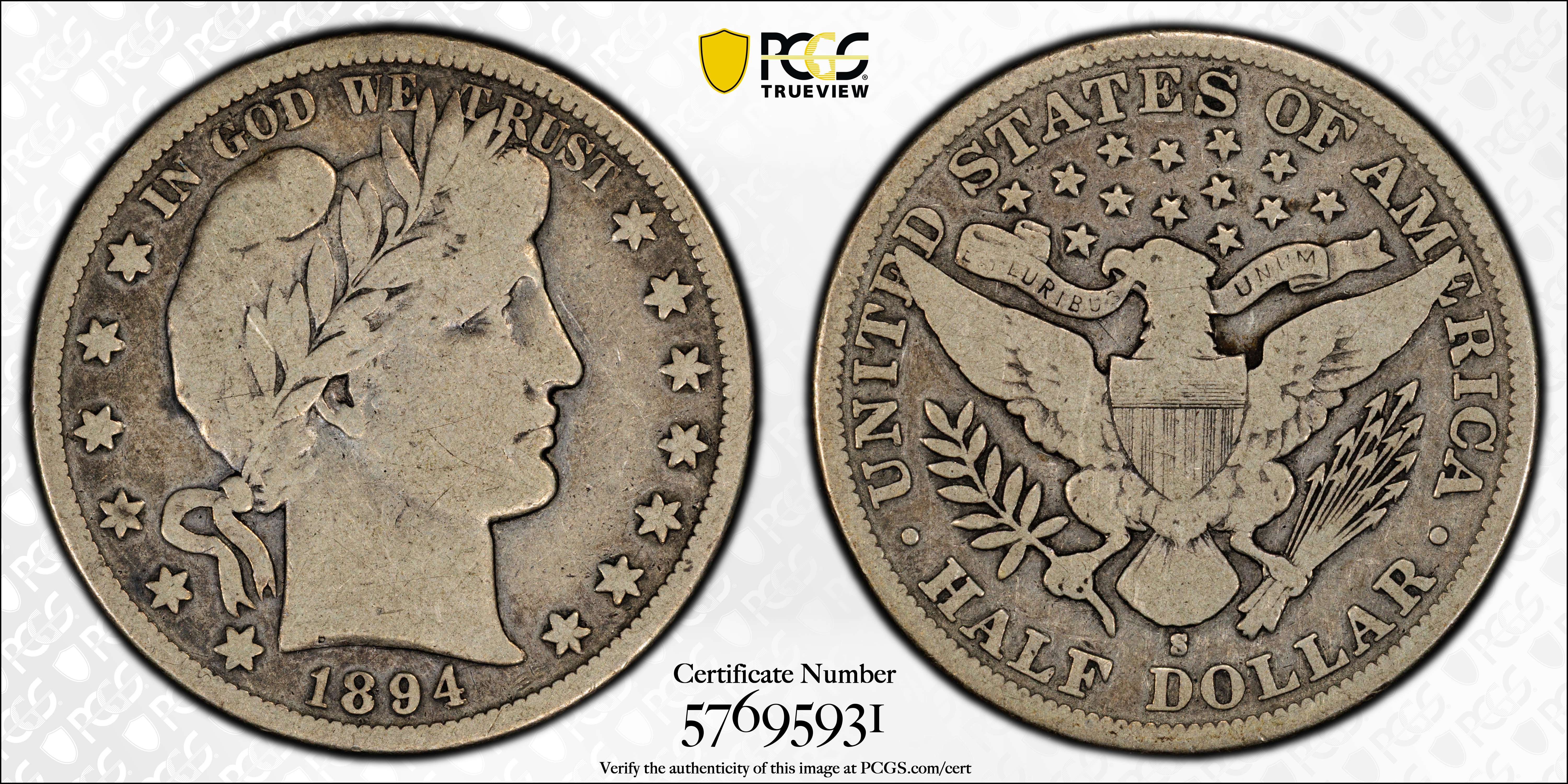 1894-S 50C VG8 Certification #57695931, PCGS #6470