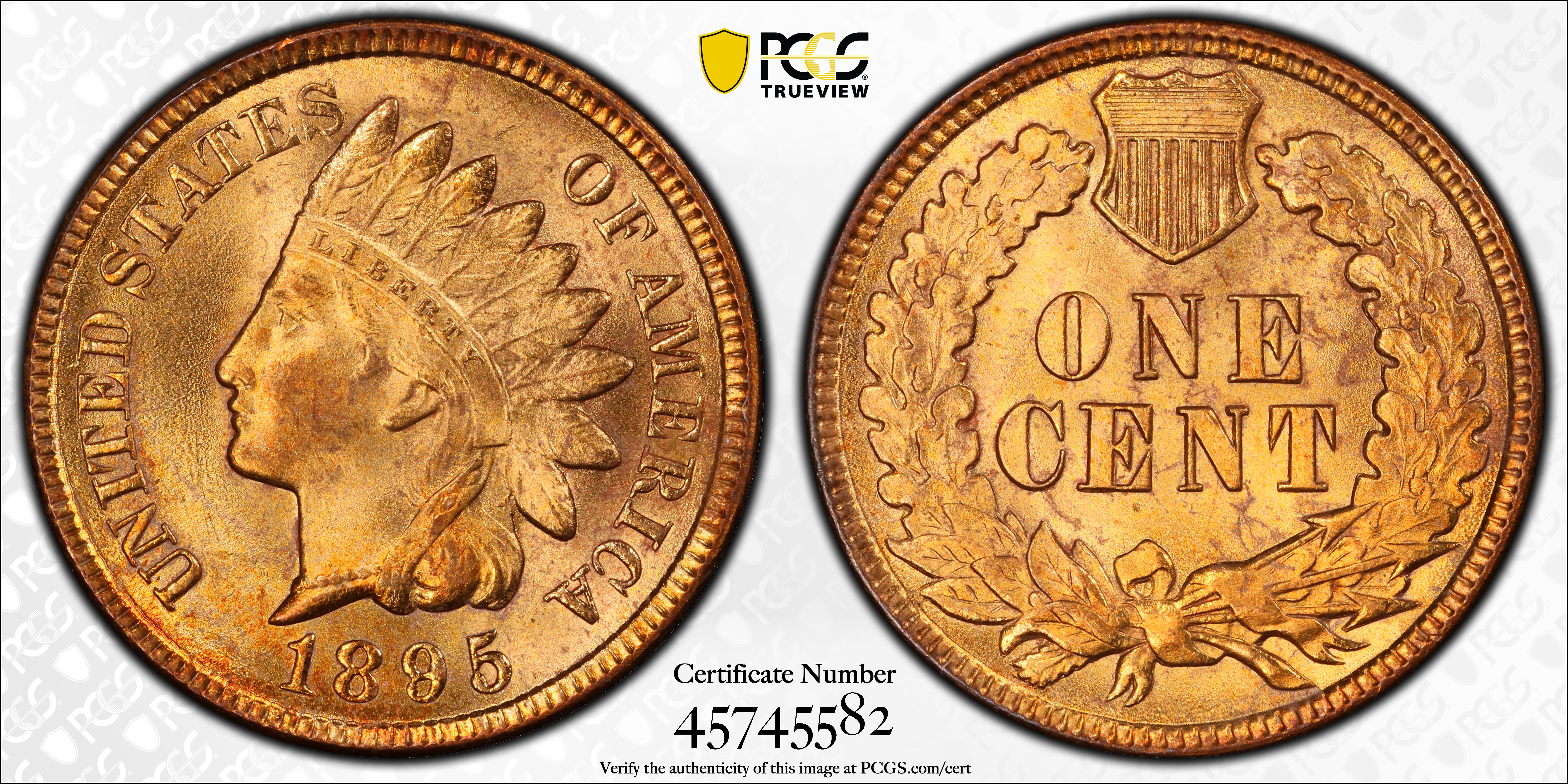 The 1895 Indian Head Cent is very common in all grades, including Mint State, where hundreds of certified examples are available in either Brown, Red-Brown, or Red. The typical, certified Mint State example rates MS64, though there are also hundreds in MS65. Because Red examples are so prevalent (and therefore affordable), collectors should put their money there. Nonetheless, the usual rules for Indian Head Cents apply -- look for strong strikes, early die states (non-grainy surfaces), and spot-free surfaces.