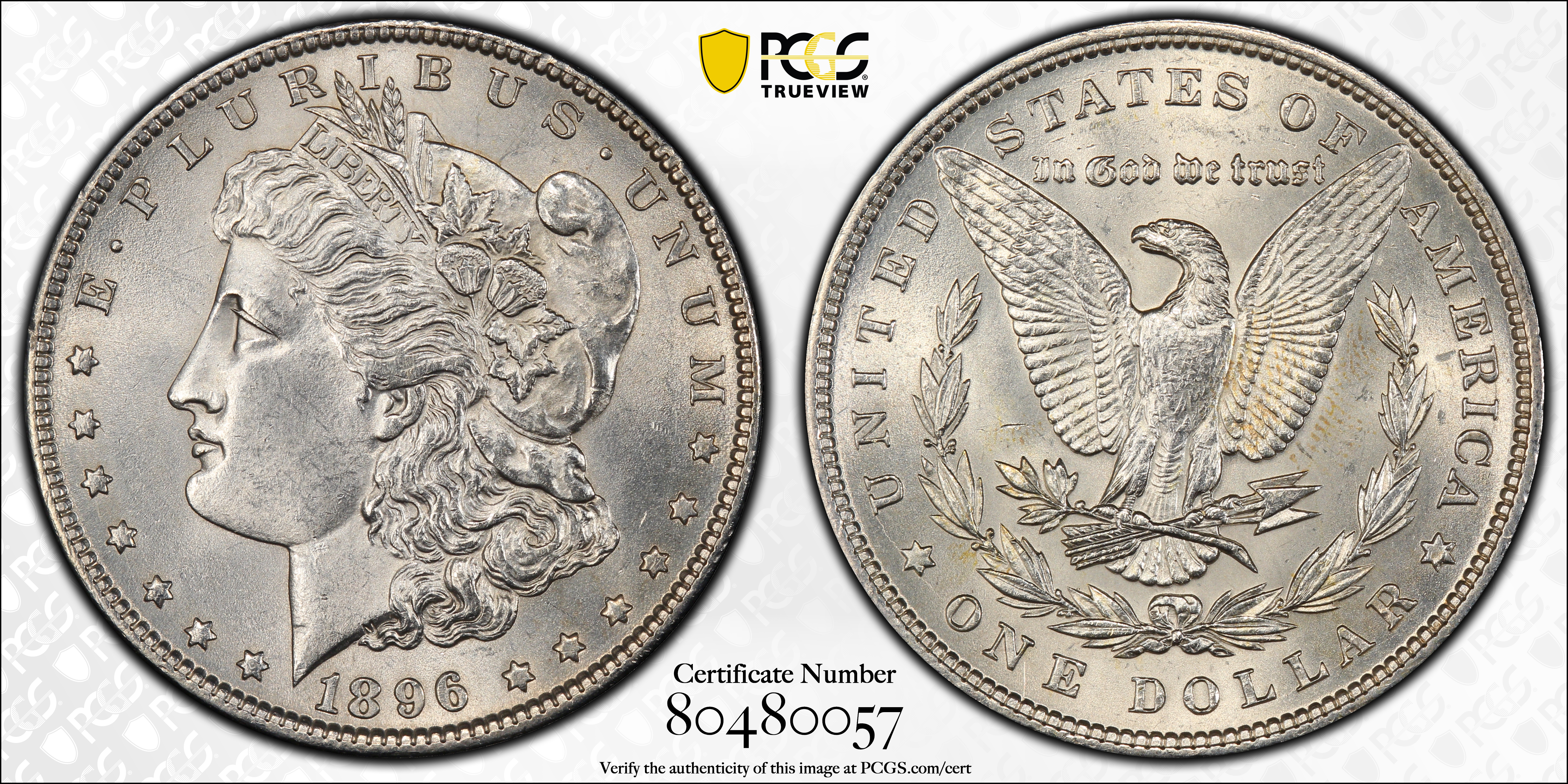 1896 $1 MS62 Certification #80480057, PCGS #7240