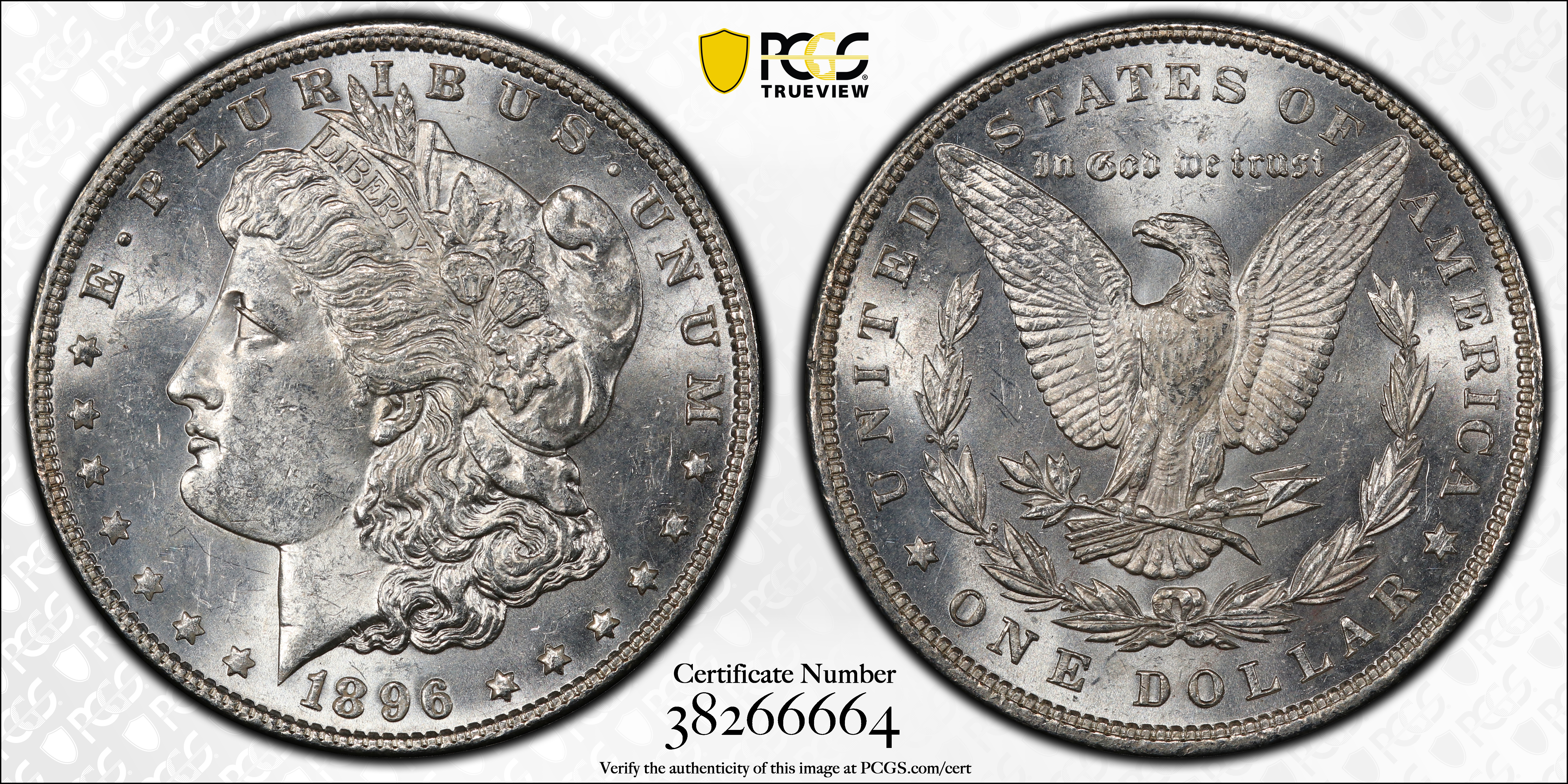 1896 $1 MS62 Certification #38266664, PCGS #7240
