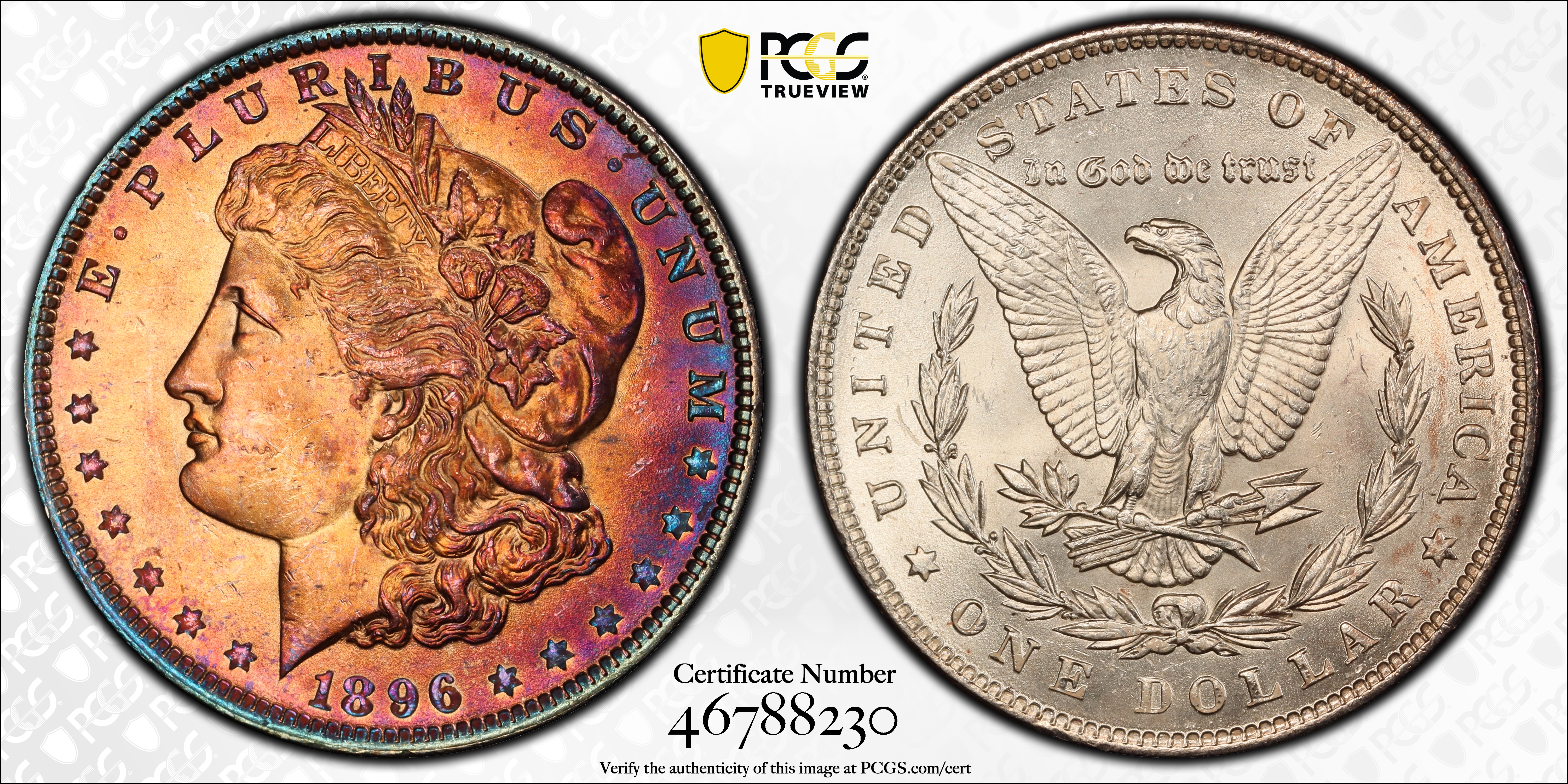 1896 $1 N1 Certification #46788230, PCGS #7240