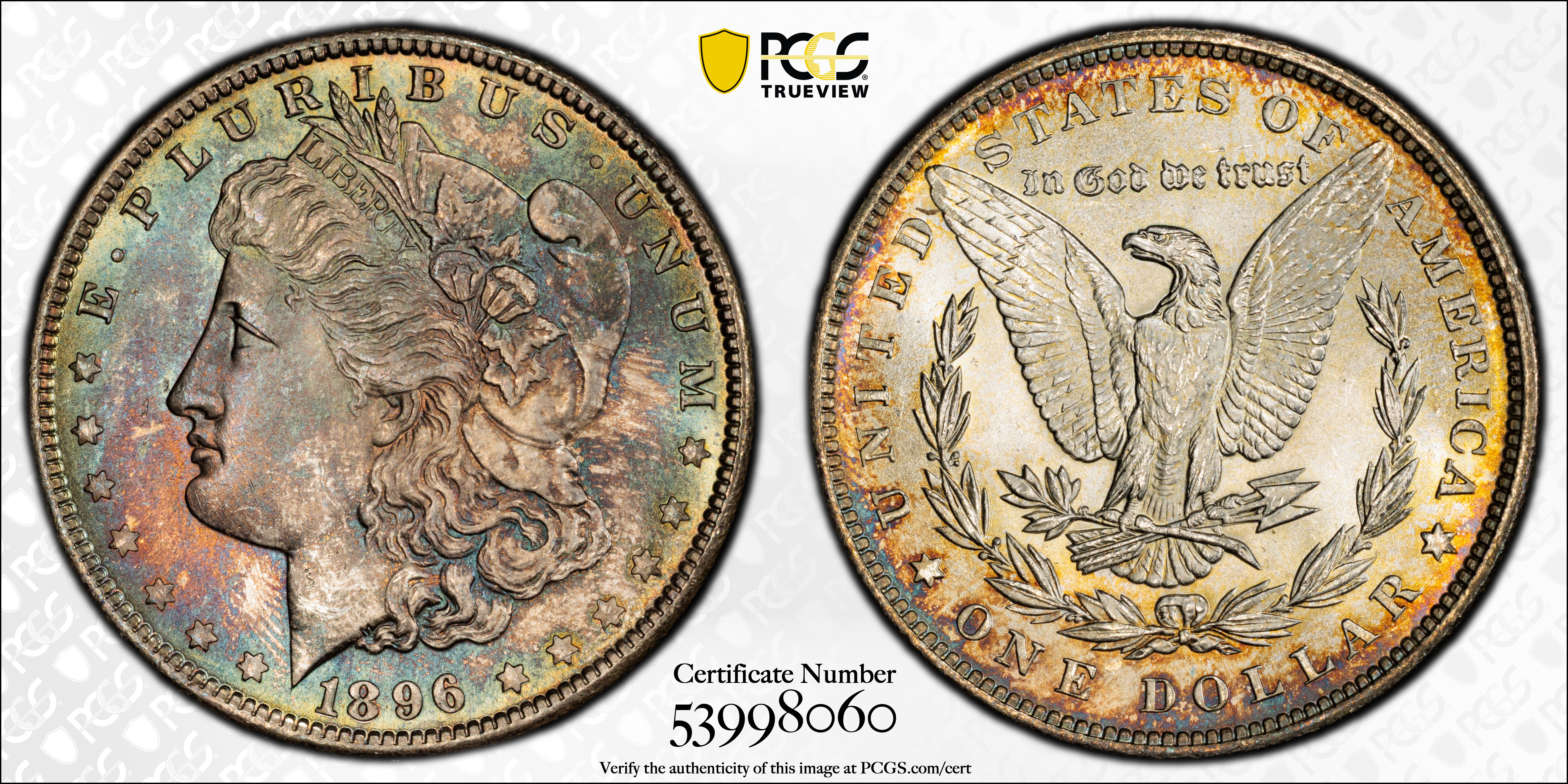 1896 $1 MS64+ Certification #53998060, PCGS #7240