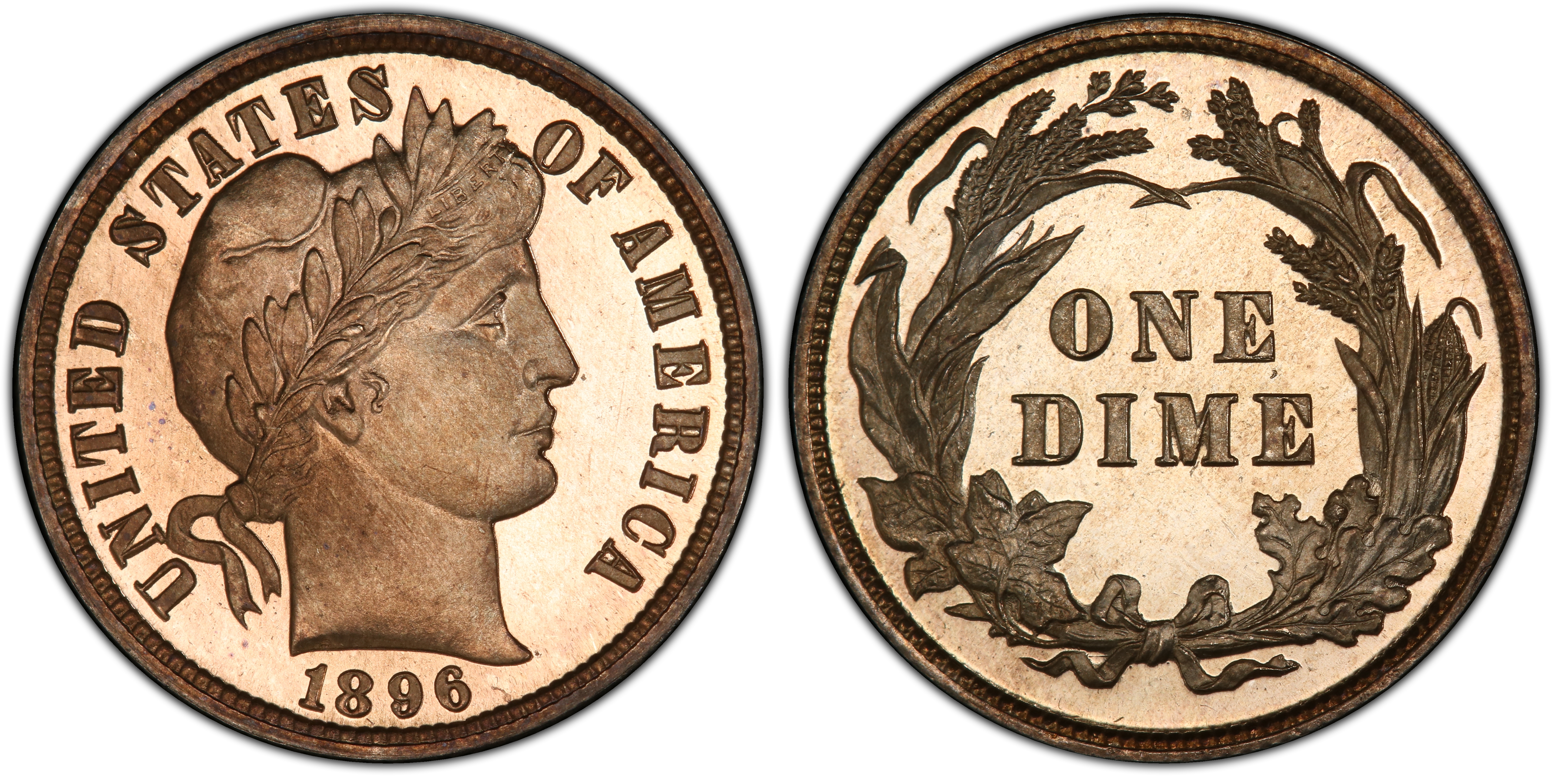 1896 10C, CAM PR67CAM Certification #34105203, PCGS #84880