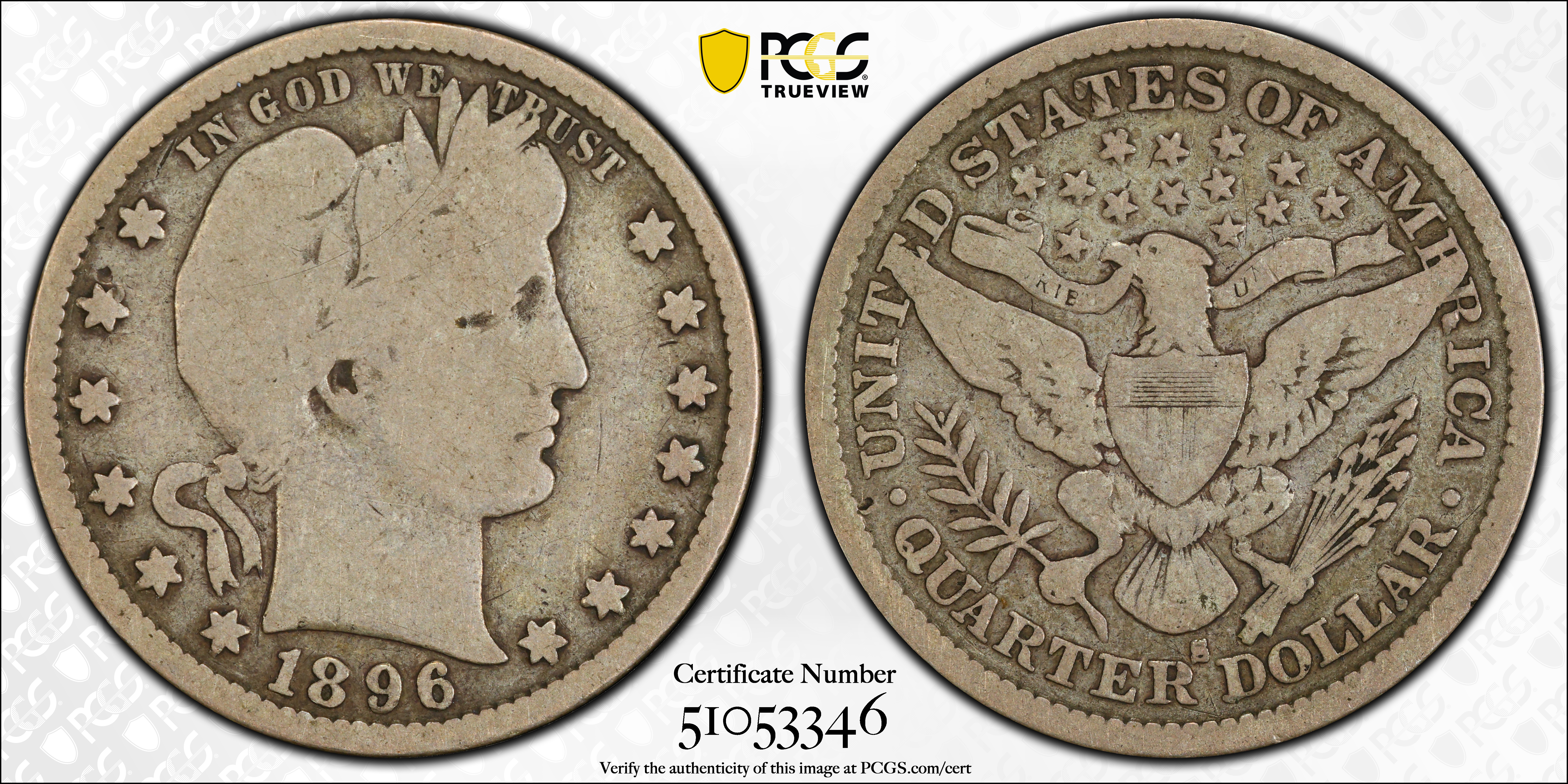 1896-S 25C G6 Certification #51053346, PCGS #5615