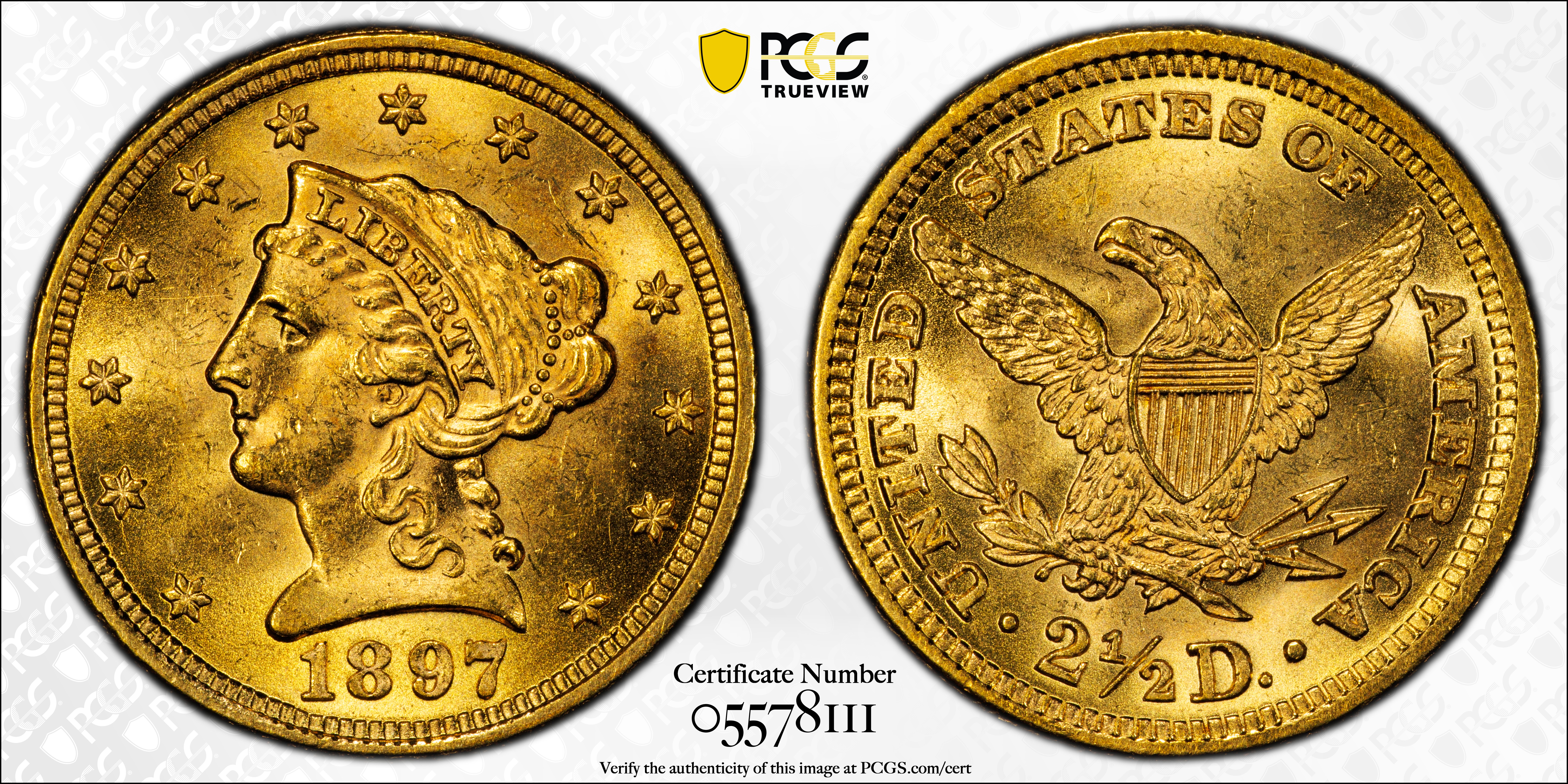 1897 $2.50 MS64 Certification #05578111, PCGS #7849