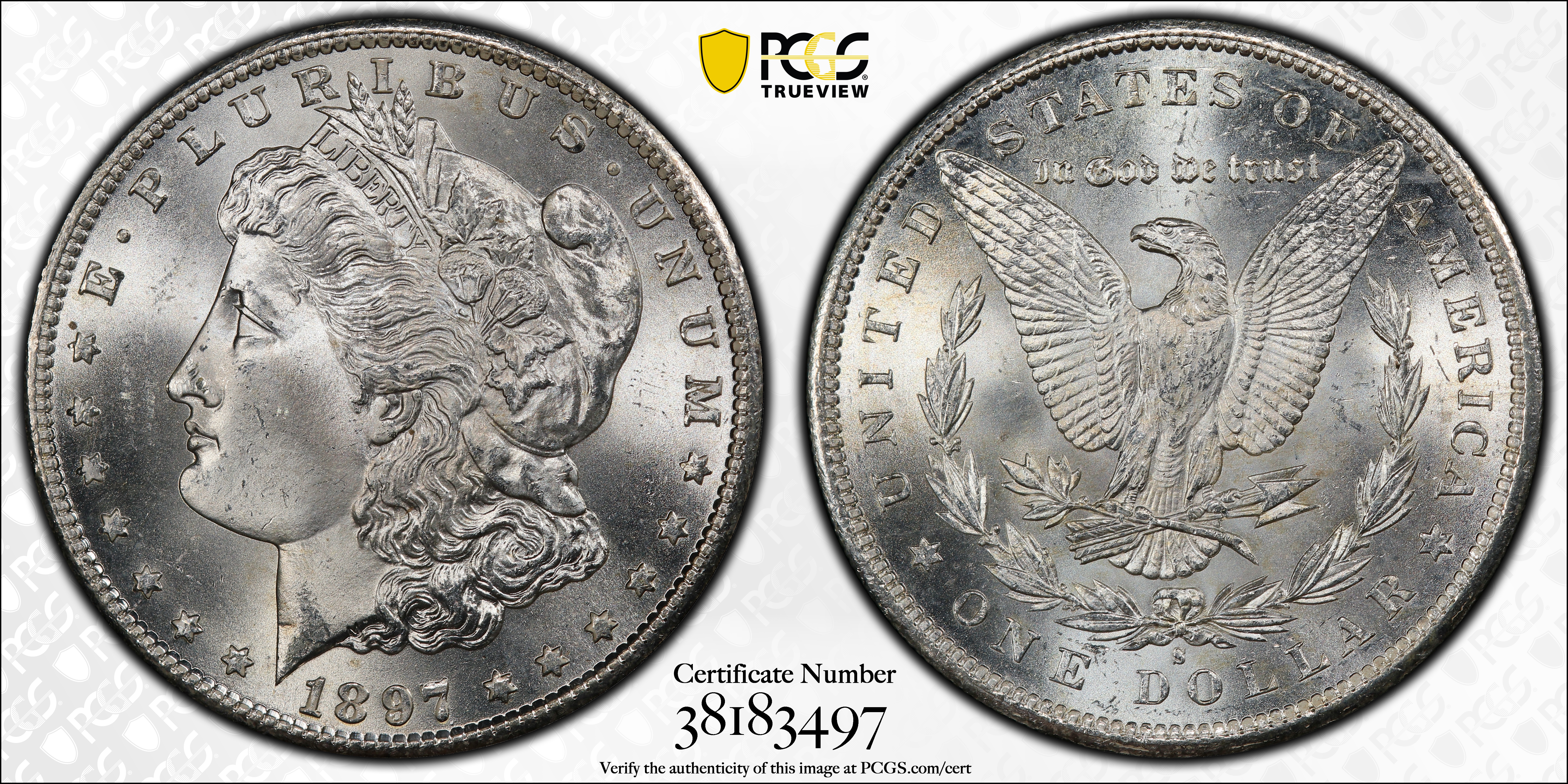 1897-S $1 MS65 Certification #38183497, PCGS #7250