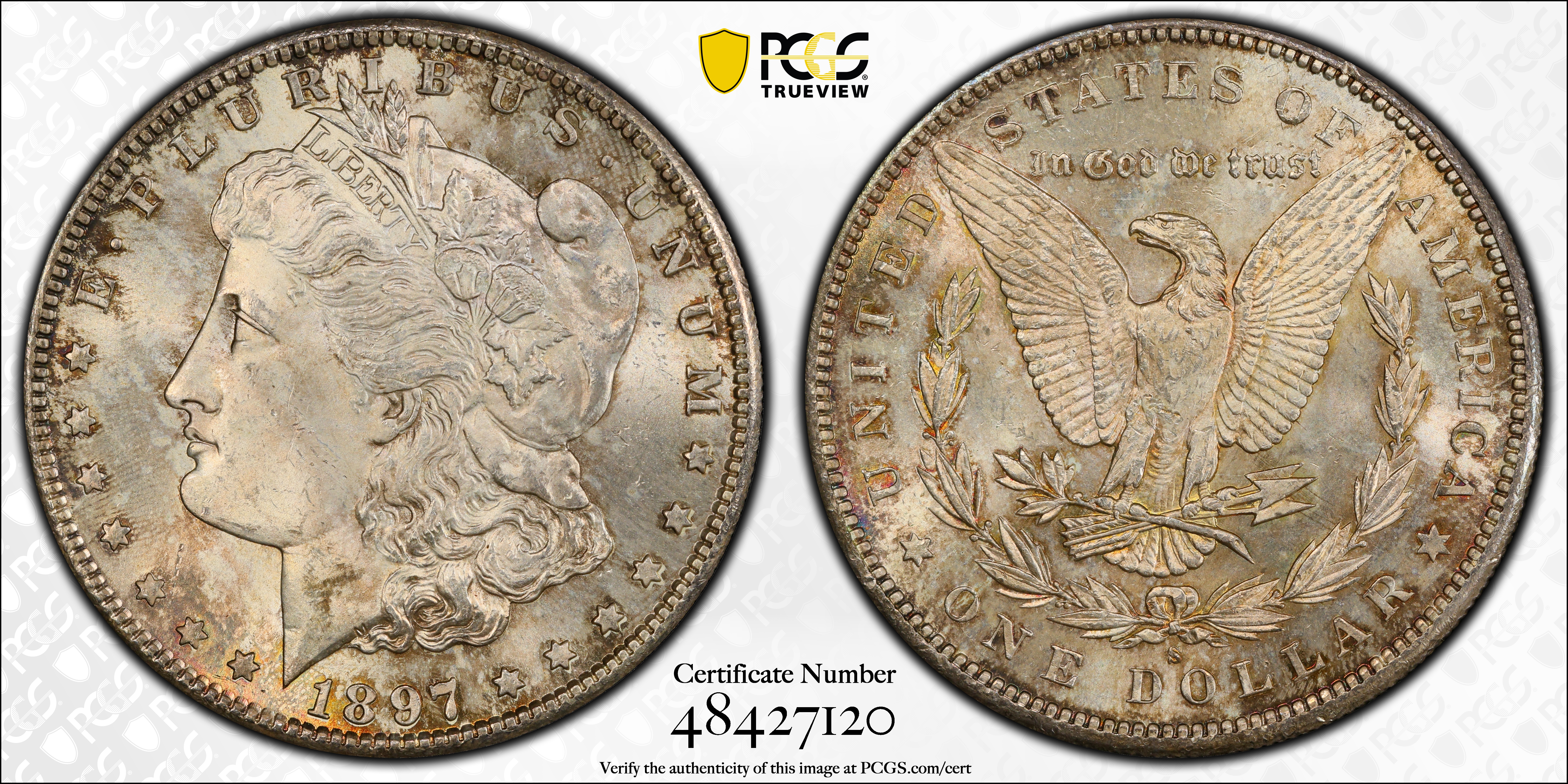 1897-S $1 MS64 Certification #48427120, PCGS #7250