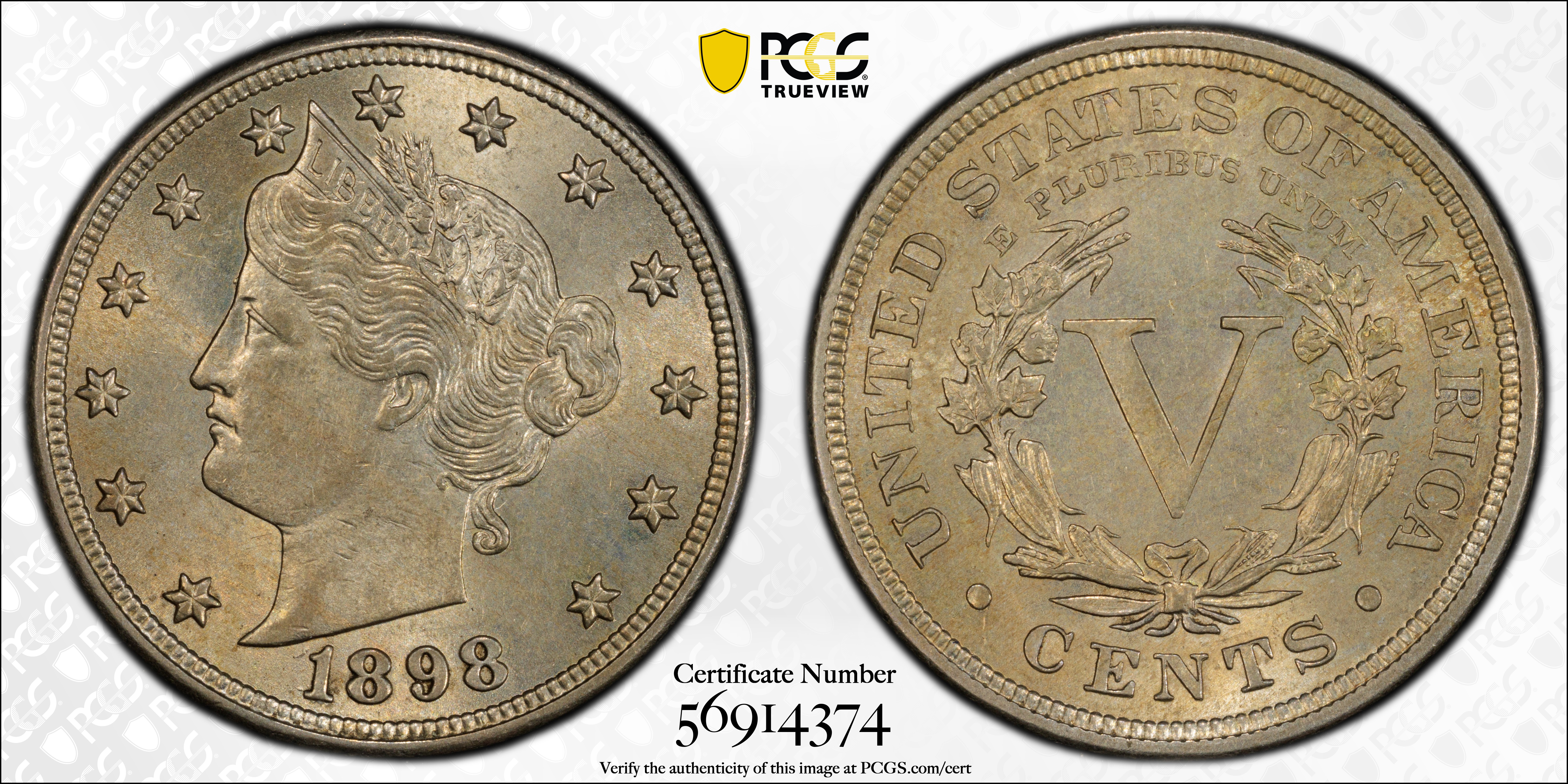 1898 5C AU58 Certification #56914374, PCGS #3859