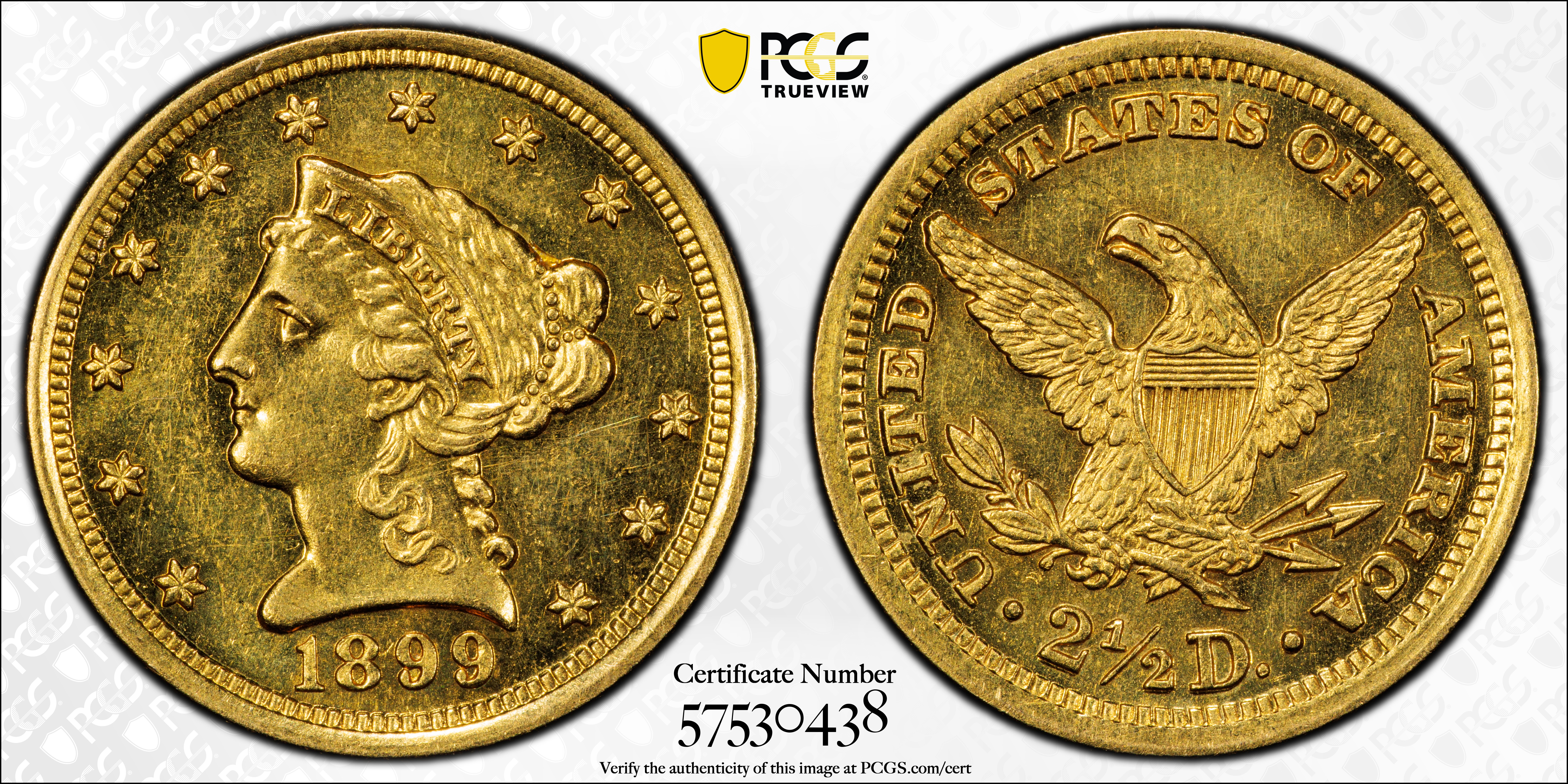 1899 $2.50 PR61 Certification #57530438, PCGS #7925
