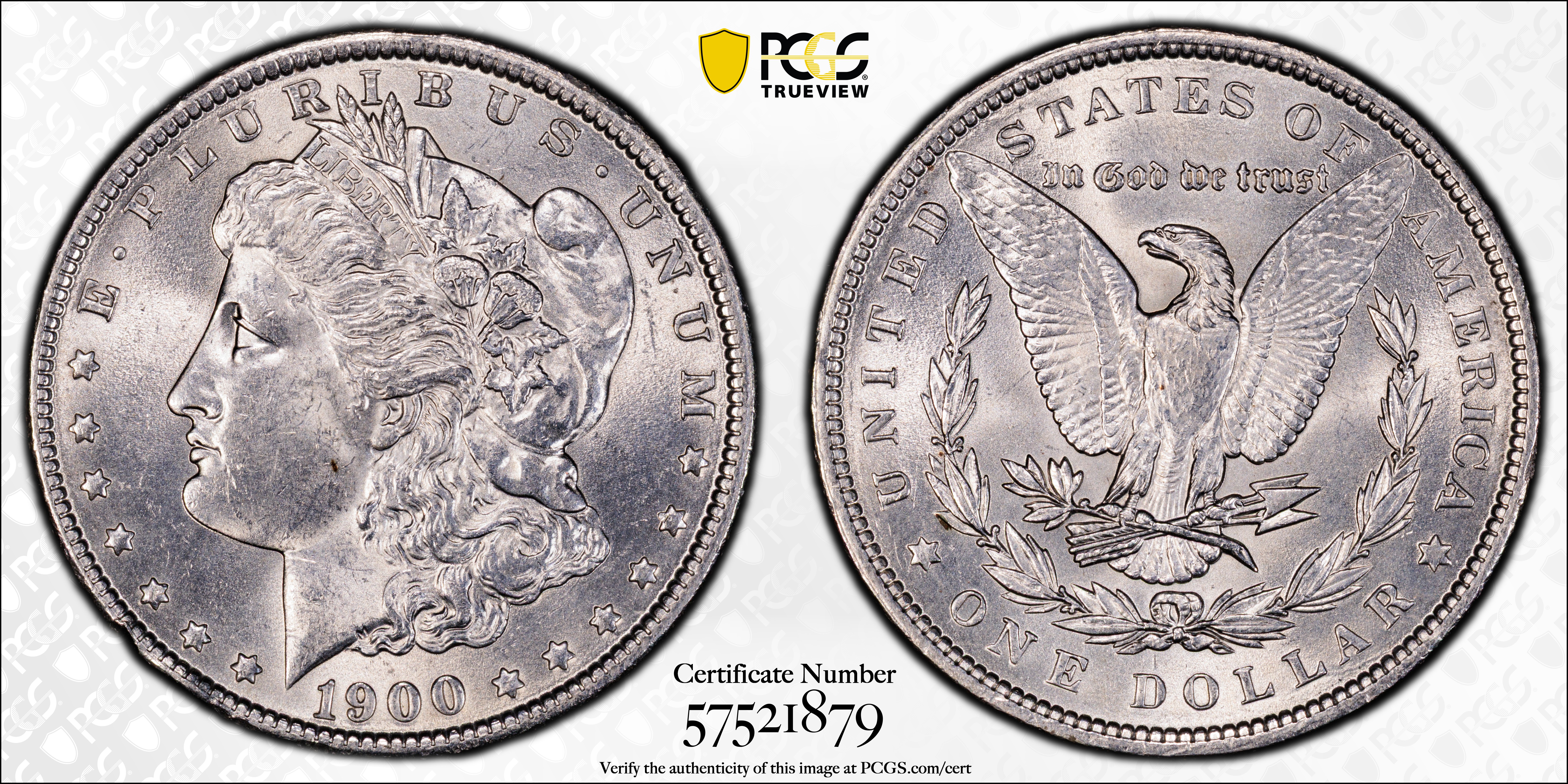 Mint State grades: 1900 dollars are among the most common of Morgan dollars. As noted, relatively few were in the 1962-1964 Treasury release, and many of the bags issued before then had been assimilated into the hands of collectors by that time. Thus, although the issue is common, more are held by the public than by numismatists. The same is true of most other issues of various dates distributed in quantity before the massive 1962-1964 dispersals. As recently as 1980, groups of Mint State 1900 dollars were scarce in dealers' stocks. Most specimens are in lower grade ranges such as MS-60 through 62 or 63.