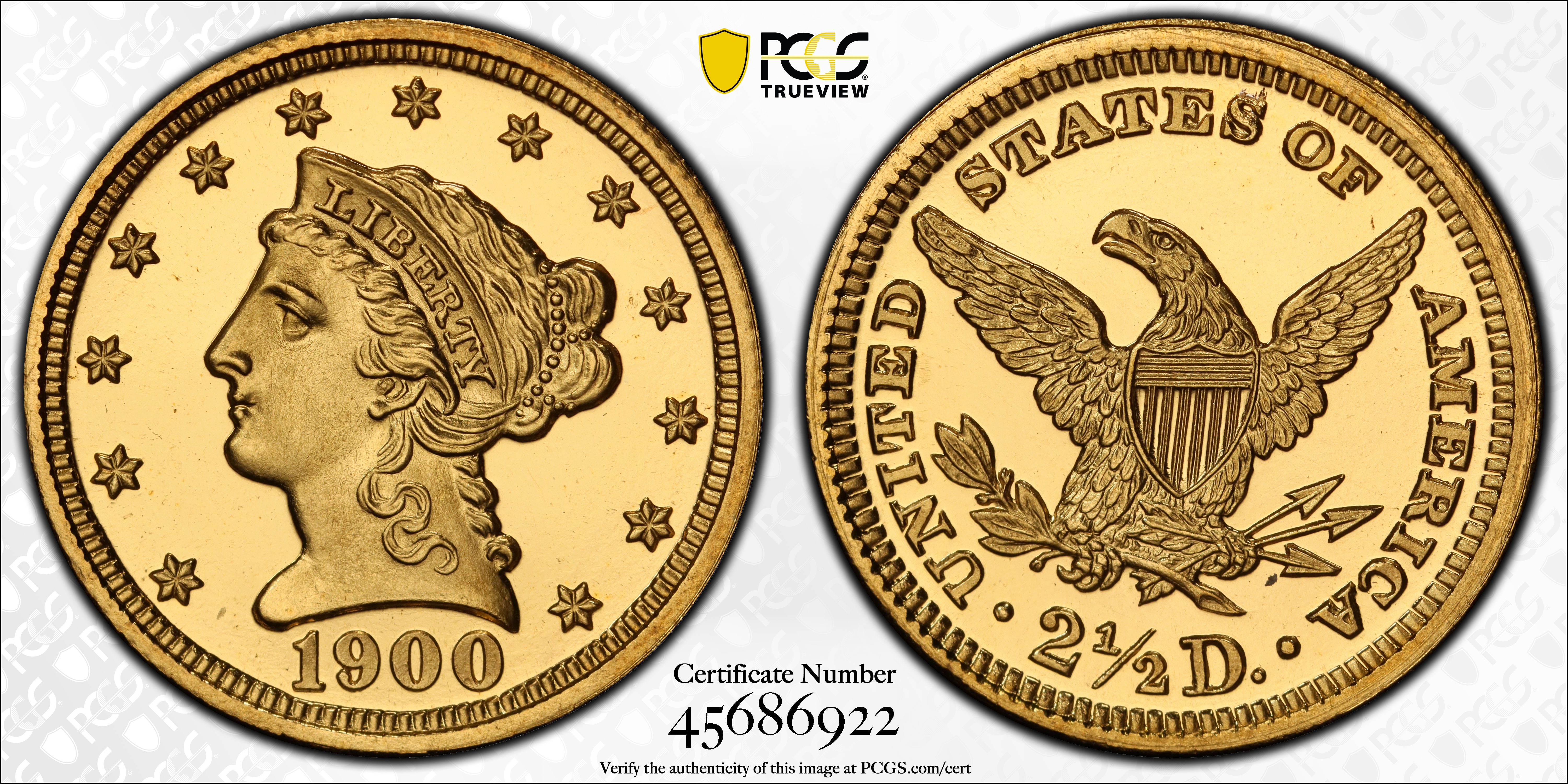 1900 $2.50, DCAM PR68DCAM Certification #45686922, PCGS #97926