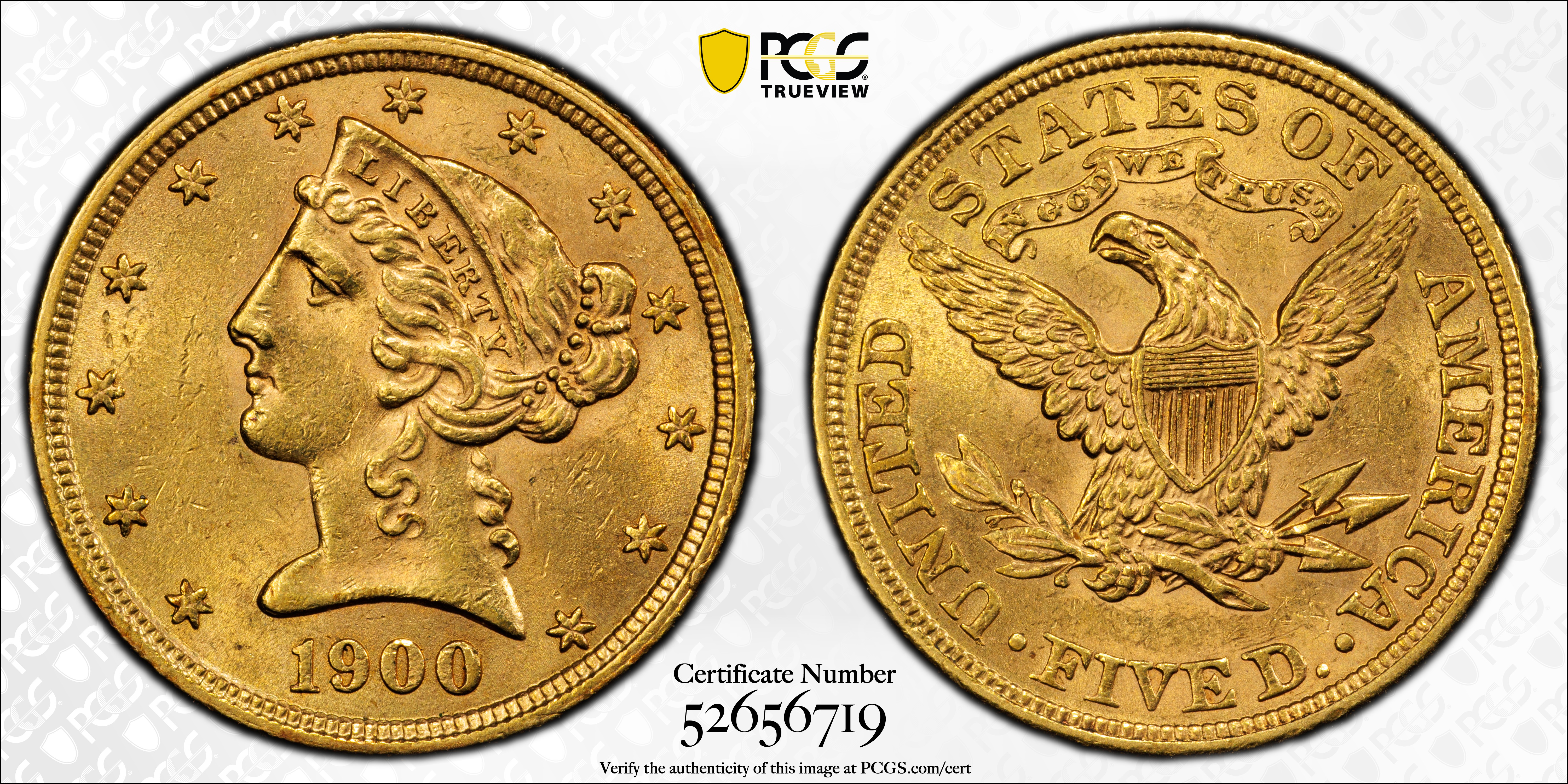 1900 $5 MS62 Certification #52656719, PCGS #8400