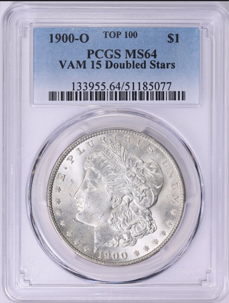 1900-O $1 VAM 15, Doubled Stars TOP 100 MS64 Certification #51185077, PCGS #133955