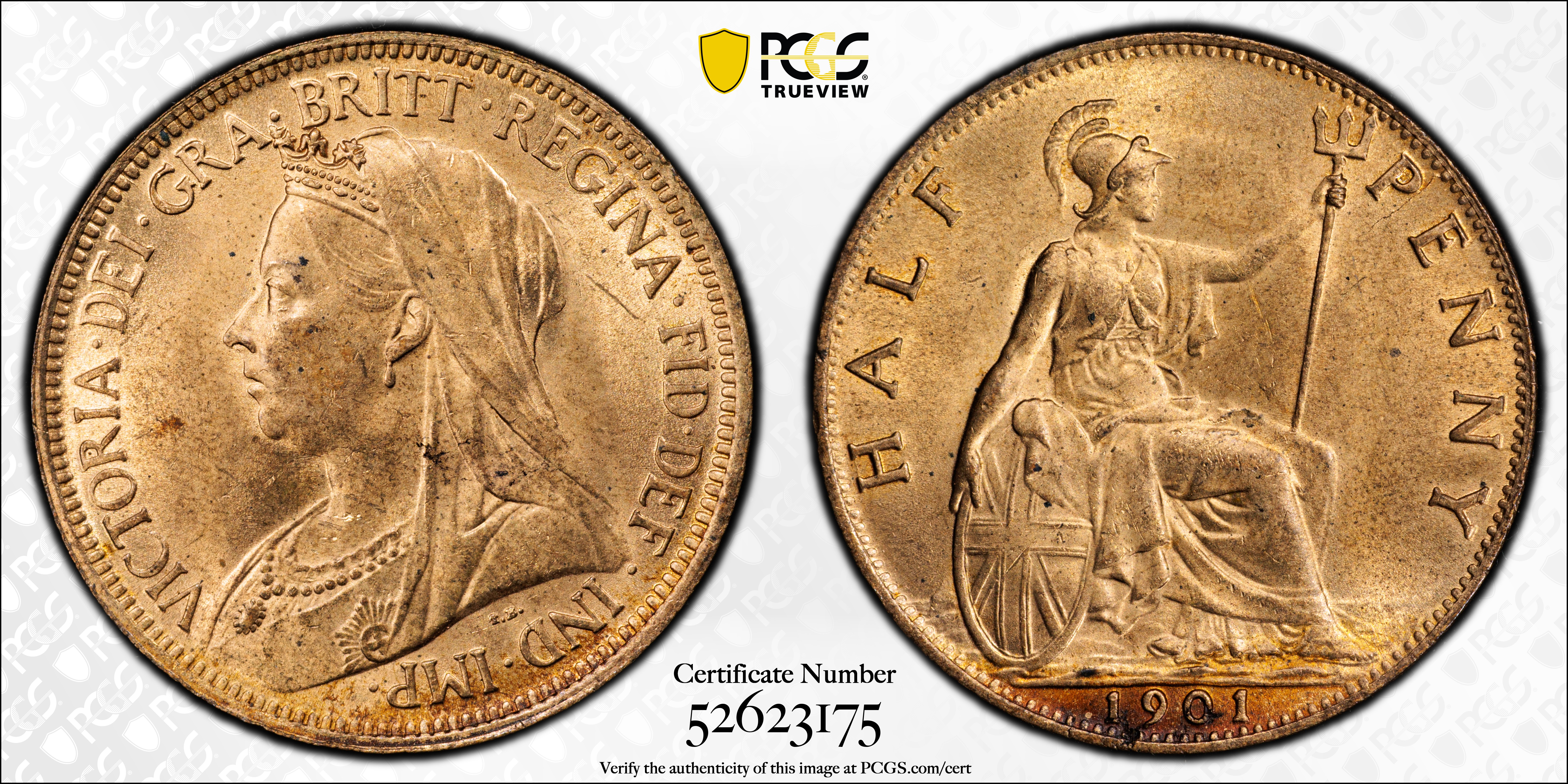 1901 1/2D S-3962, RD MS64RD Certification #52623175, PCGS #201774