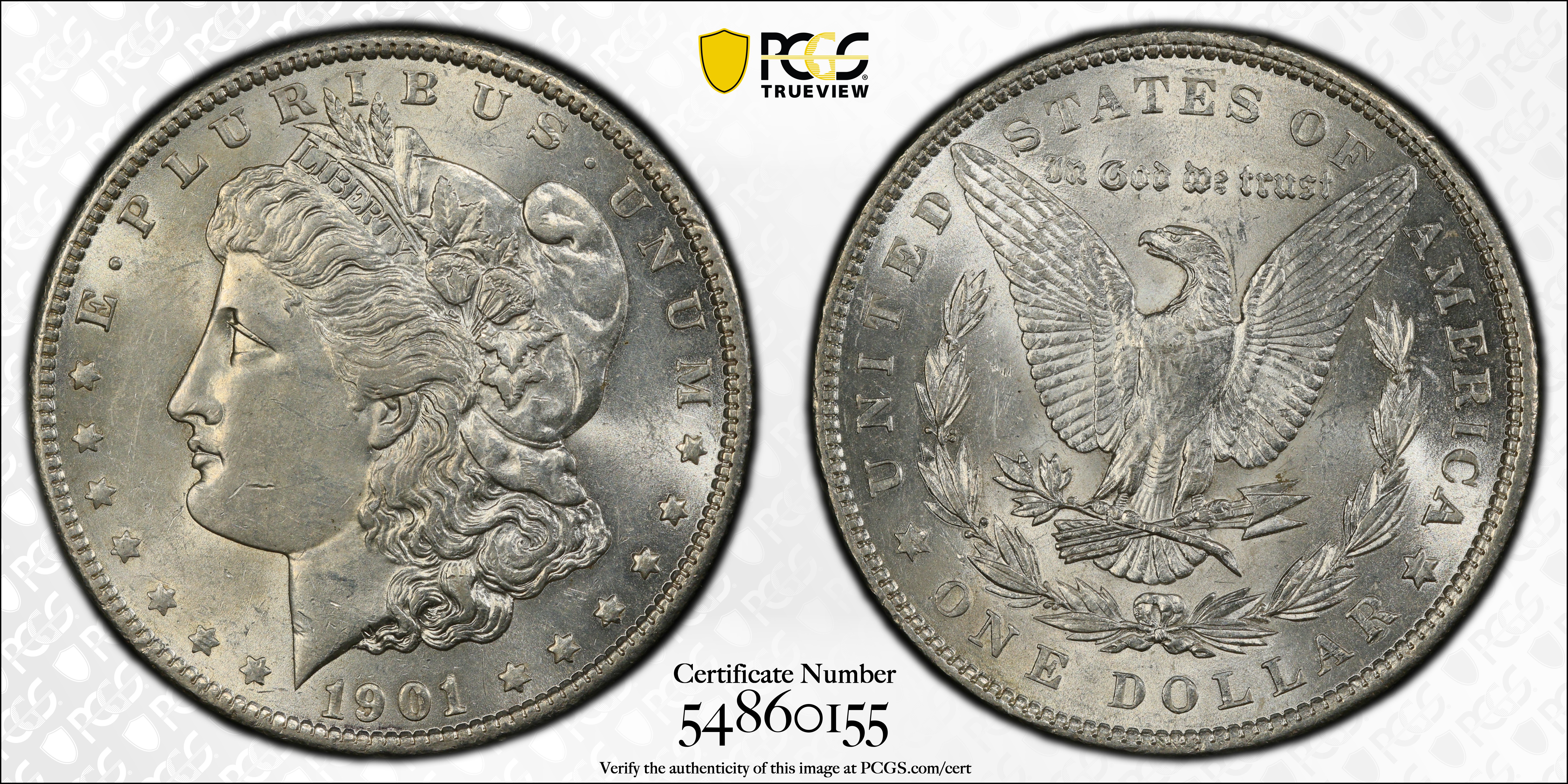 Mint State grades: While specimens remain in MS-60 to 62 grades to the extent of an estimated 750 to 1,500 pieces, at higher levels the 1901 dollar is a major rarity. Only about 100 to 200 MS-63 coins are known, just 10 to 20 in MS-64, and, possibly, only 2 to 4 in MS-65.