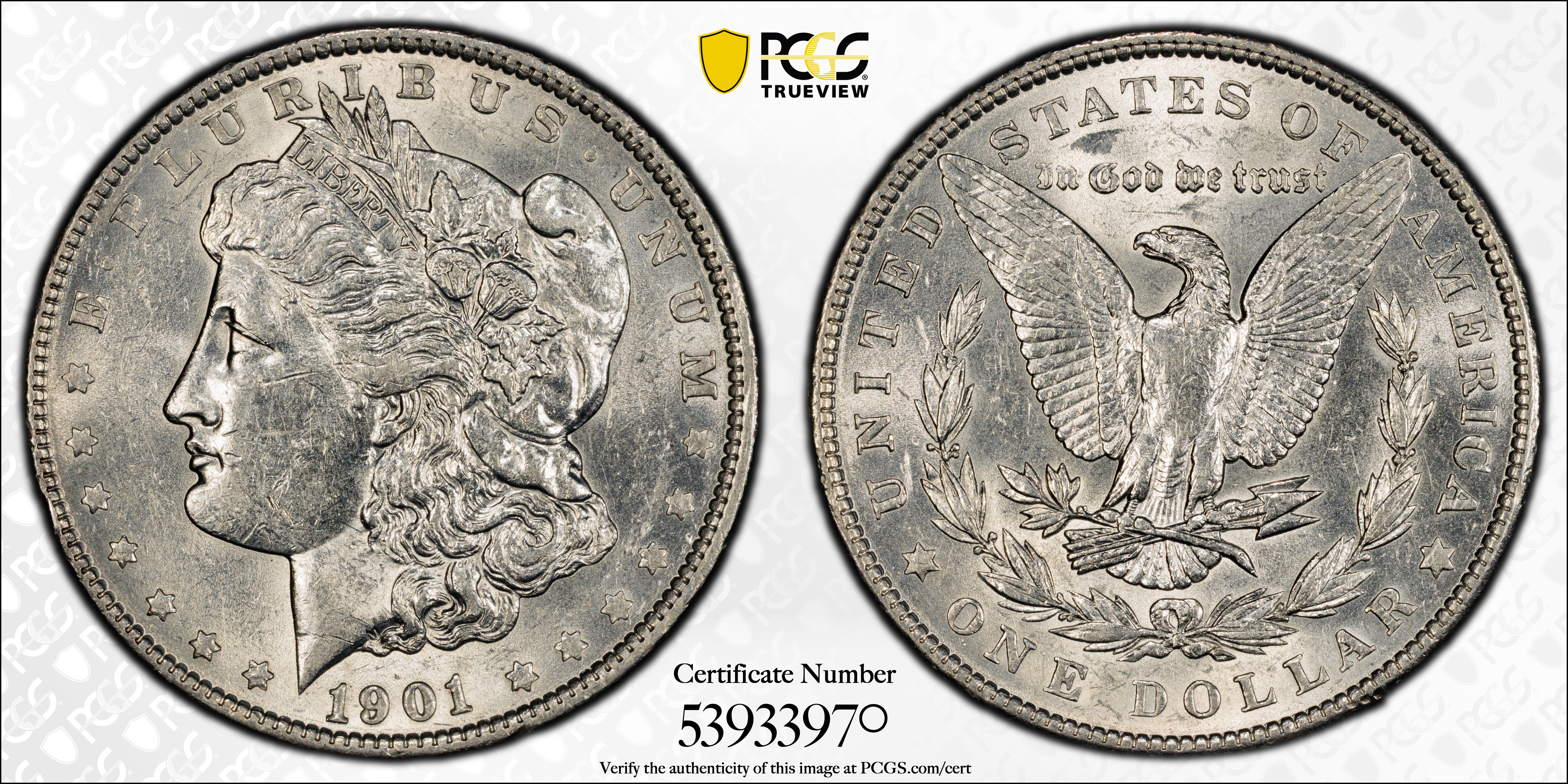 Mint State grades: While specimens remain in MS-60 to 62 grades to the extent of an estimated 750 to 1,500 pieces, at higher levels the 1901 dollar is a major rarity. Only about 100 to 200 MS-63 coins are known, just 10 to 20 in MS-64, and, possibly, only 2 to 4 in MS-65.