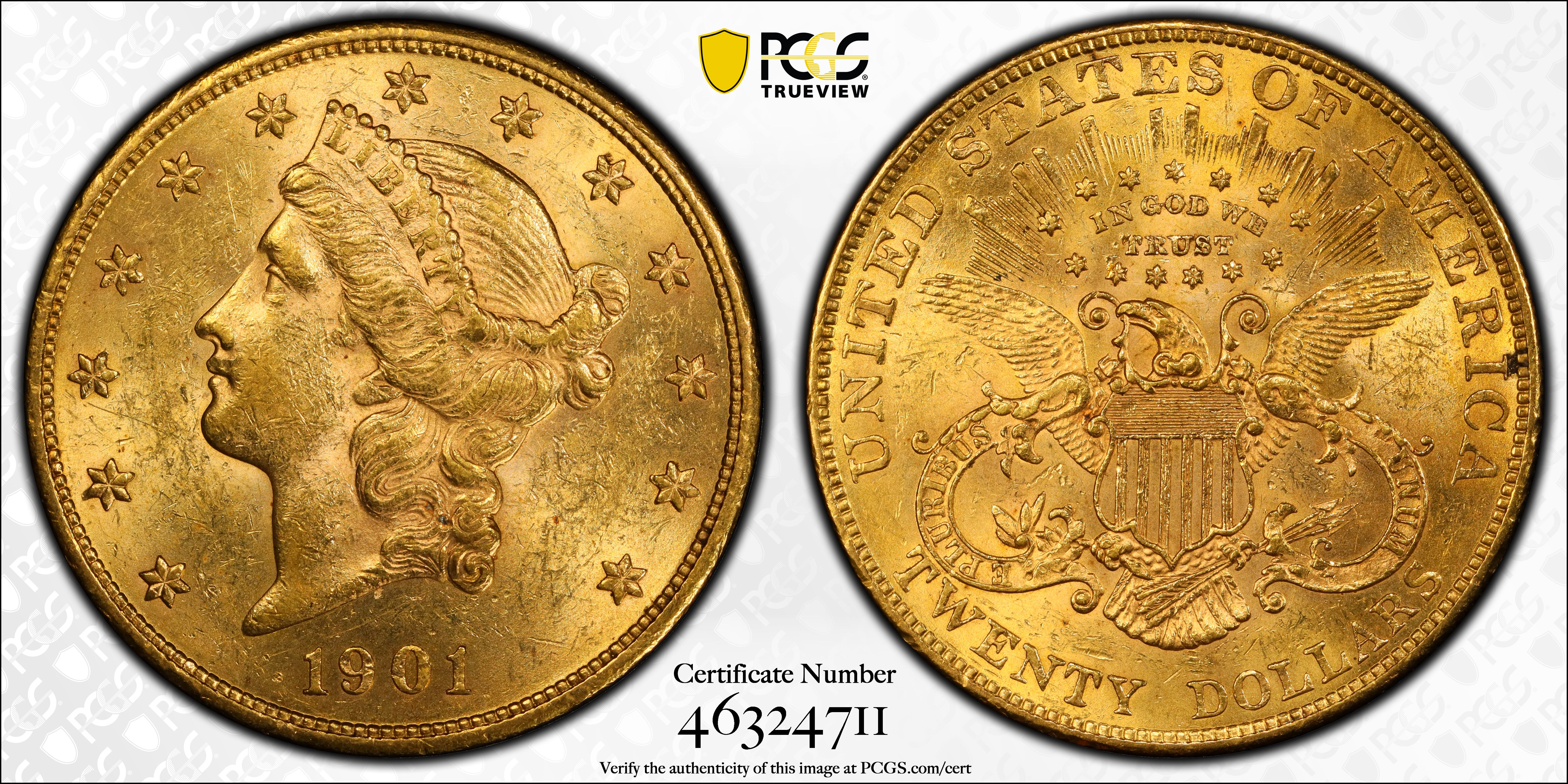 1901 $20 AU58 Certification #46324711, PCGS #9039