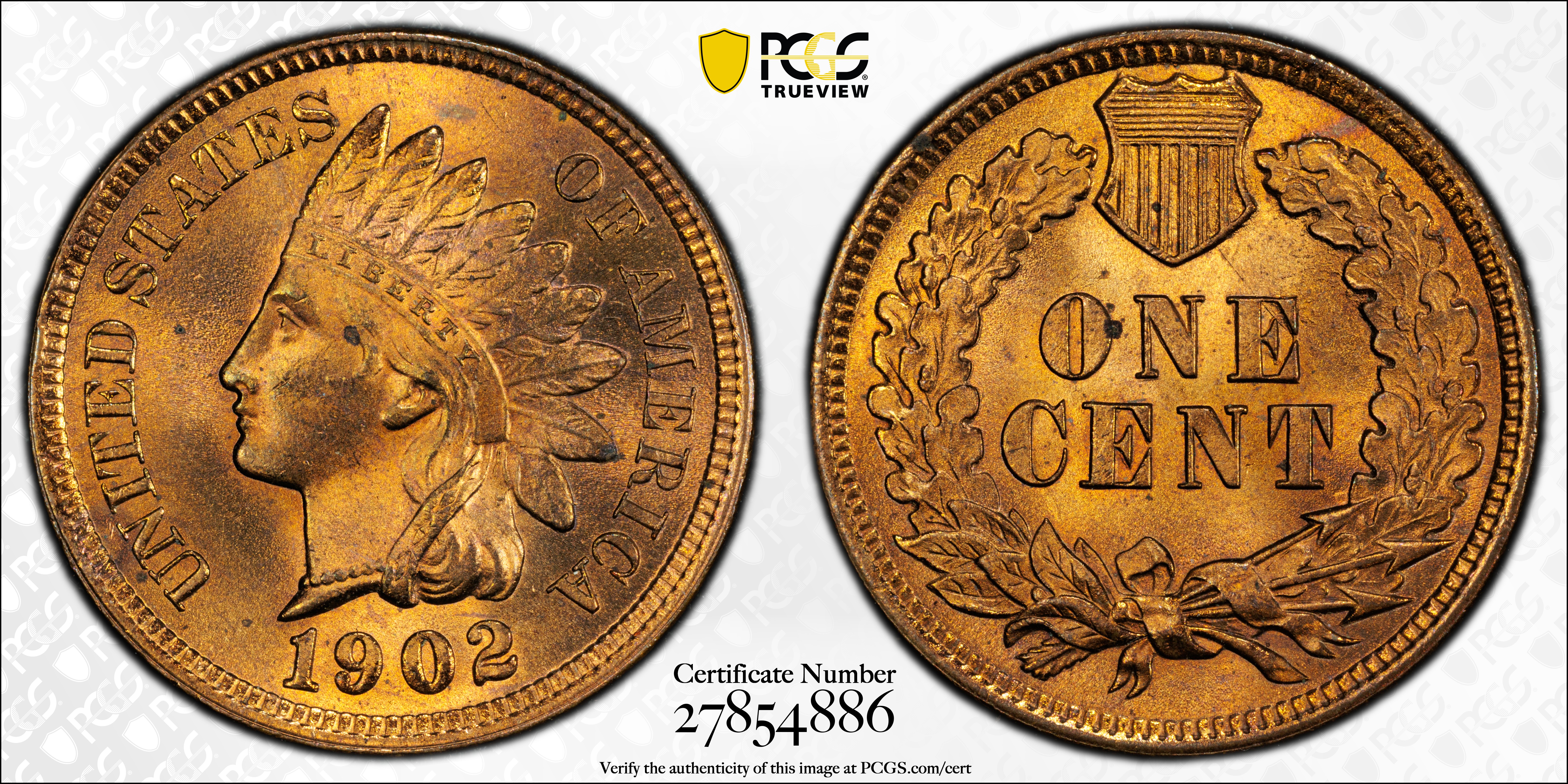 1902 1C, RB MS65RB Certification #27854886, PCGS #2212