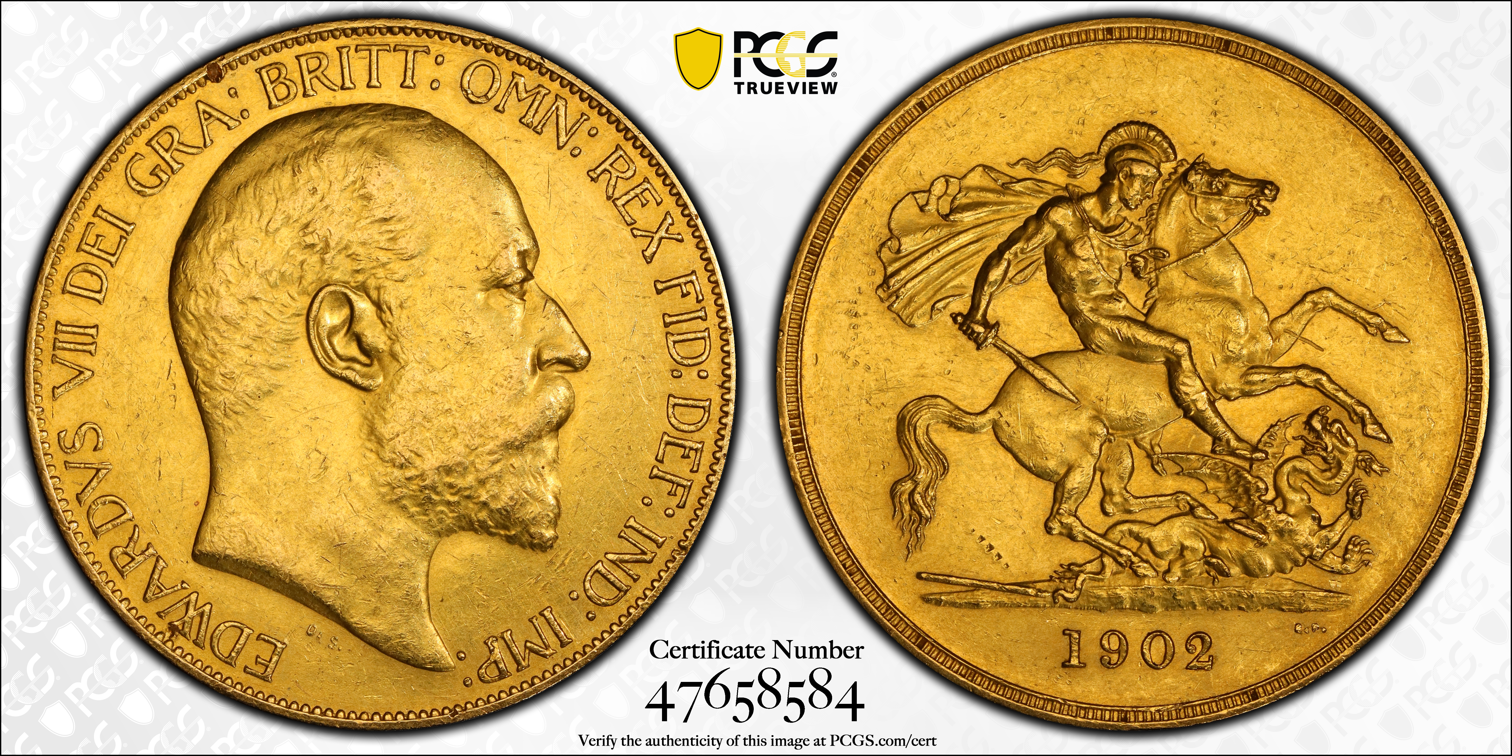 1902 £5 S-3965 N1 Certification #47658584, PCGS #207343