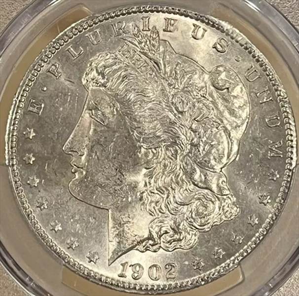 The typical 1902-S Morgan dollar is somewhat lightly struck. Lustre is satiny, sometimes "greasy," rarely deeply frosty. Some pieces show parallel striae on the planchet, a vestige of the drawing bench operation prior to coinage.