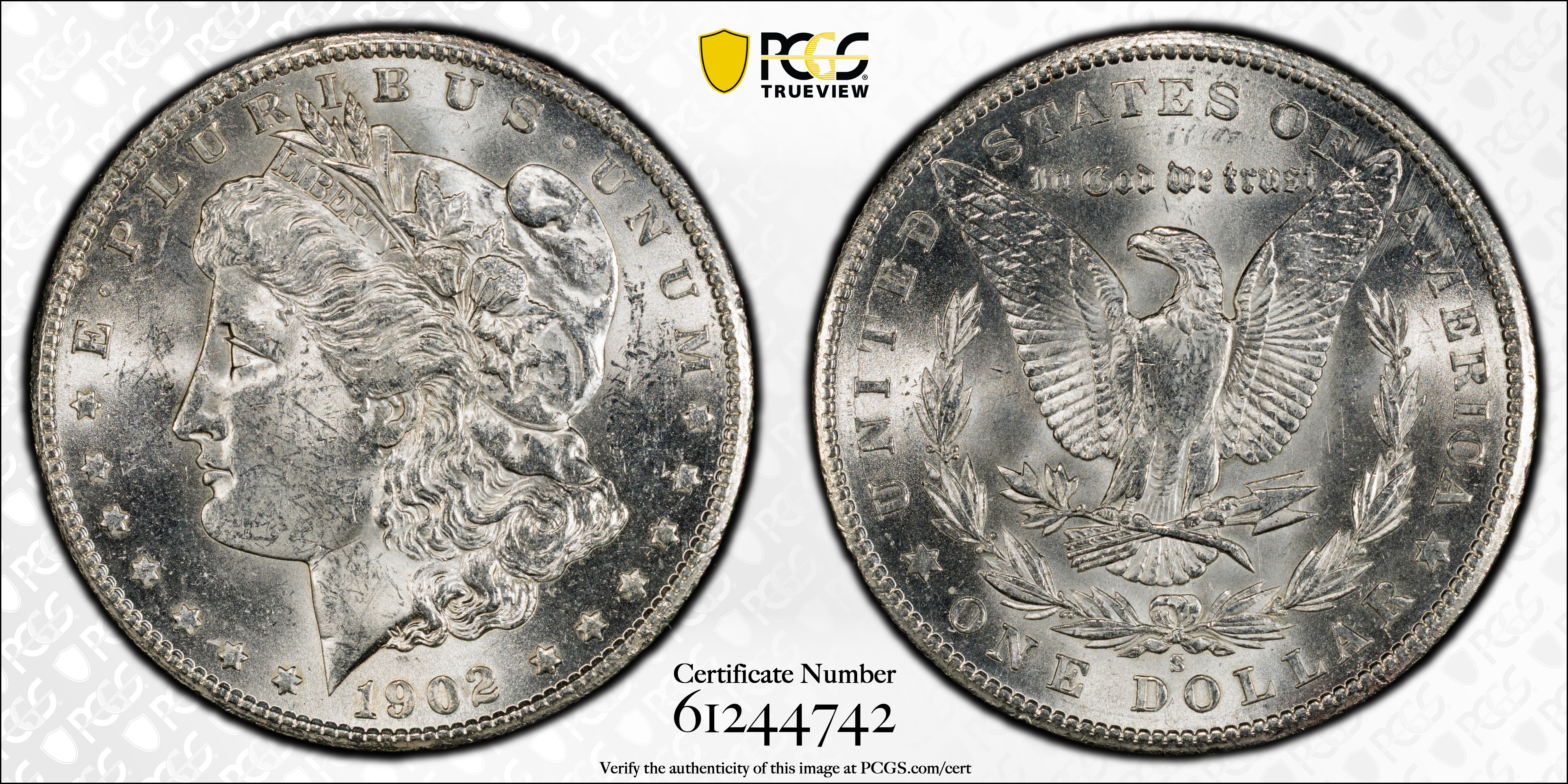 1902-S $1 MS62 Certification #61244742, PCGS #7282