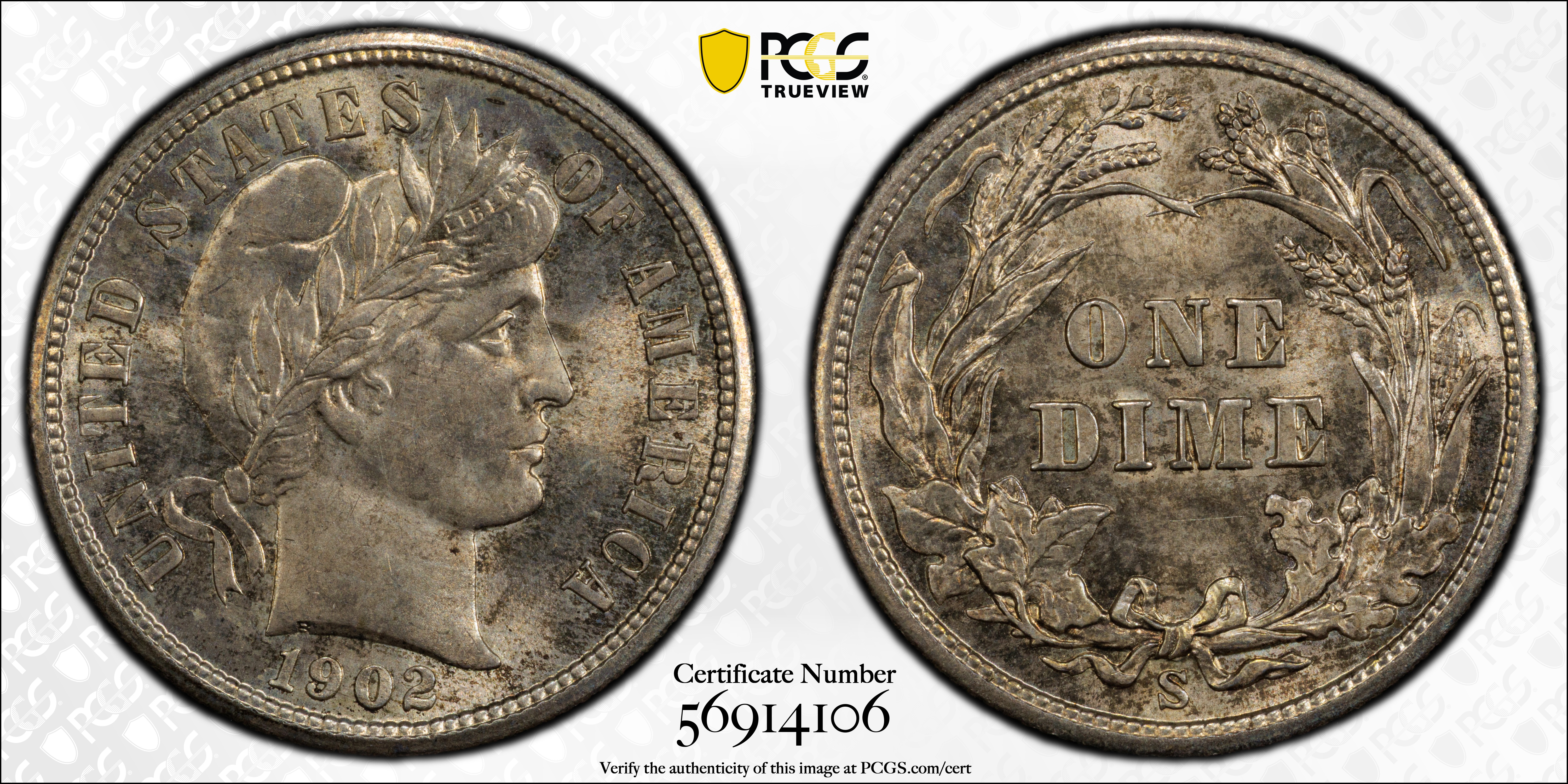 1902-S 10C MS66 Certification #56914106, PCGS #4829