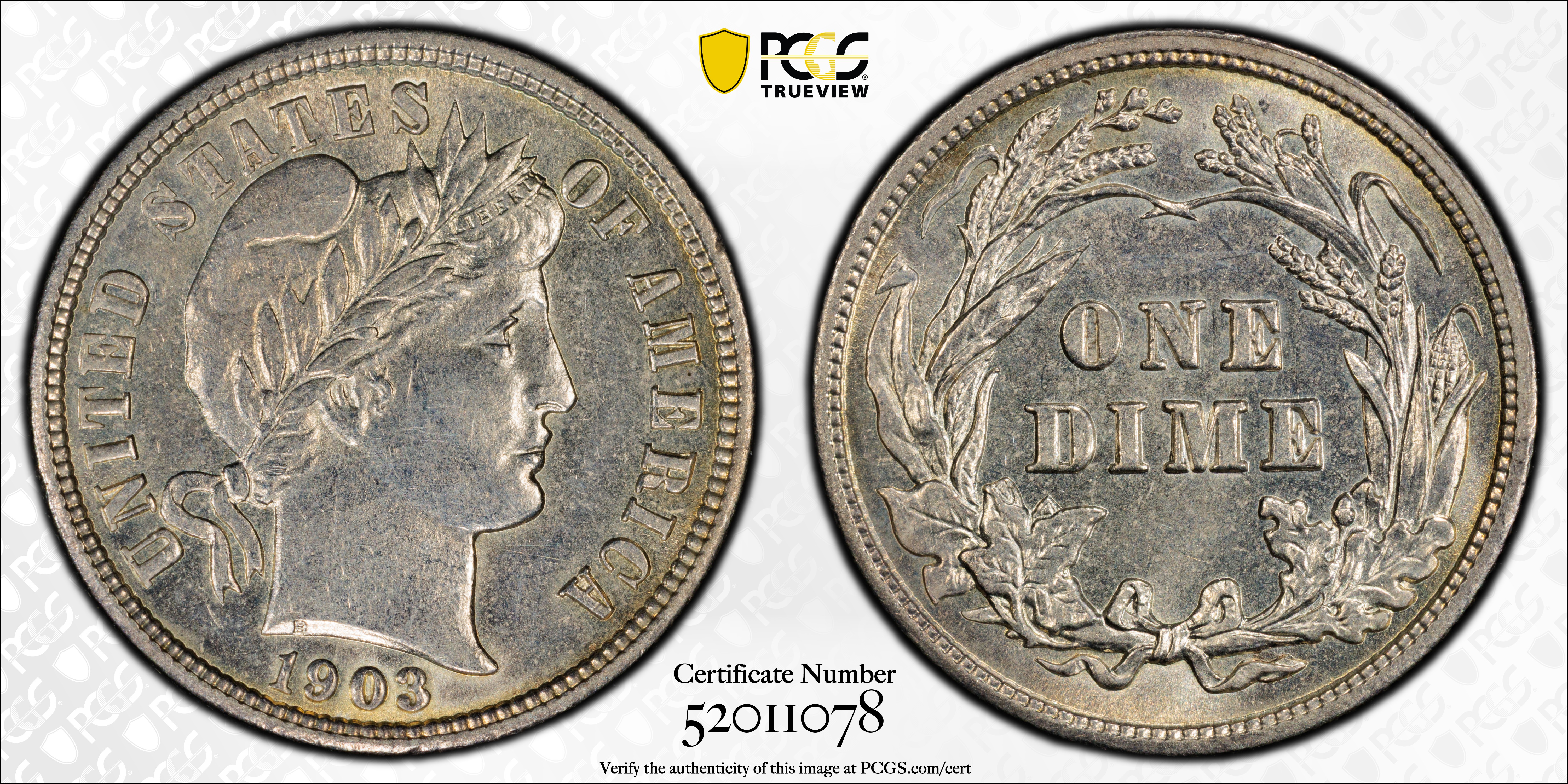 1903 10C N1 Certification #52011078, PCGS #4830