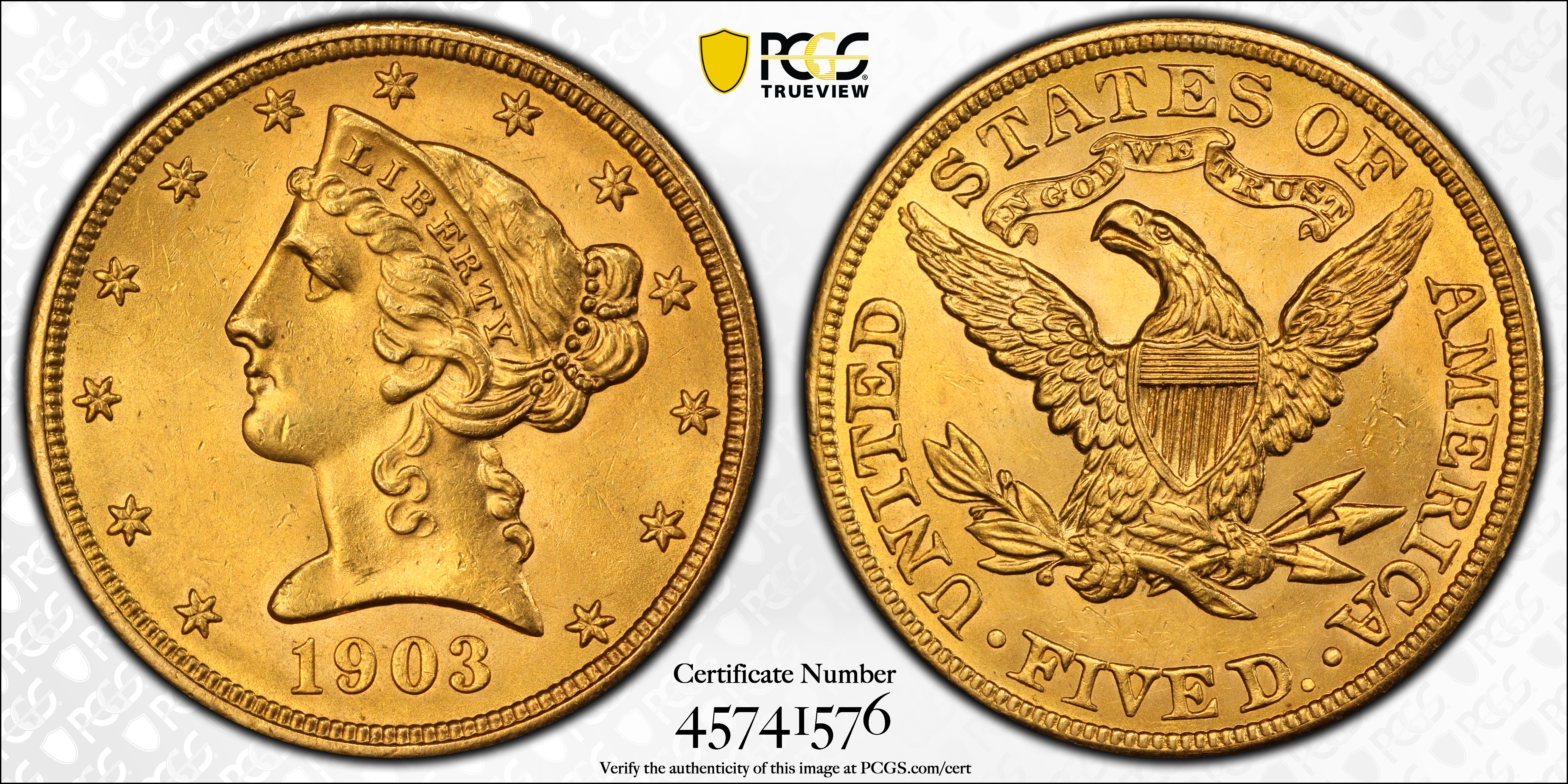 1903 $5 MS64 Certification #45741576, PCGS #8407