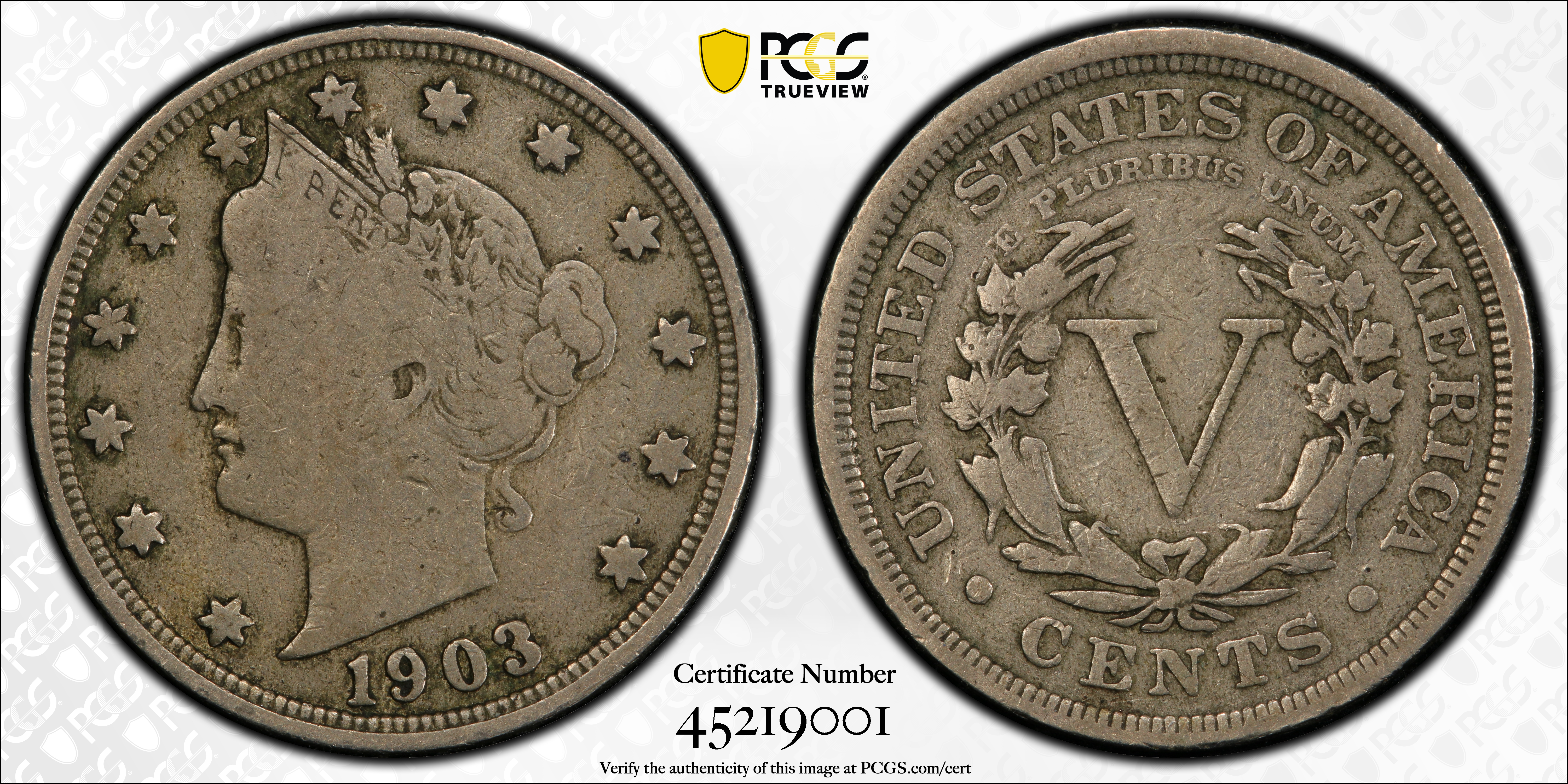 1903 5C PR10 Certification #45219001, PCGS #3901