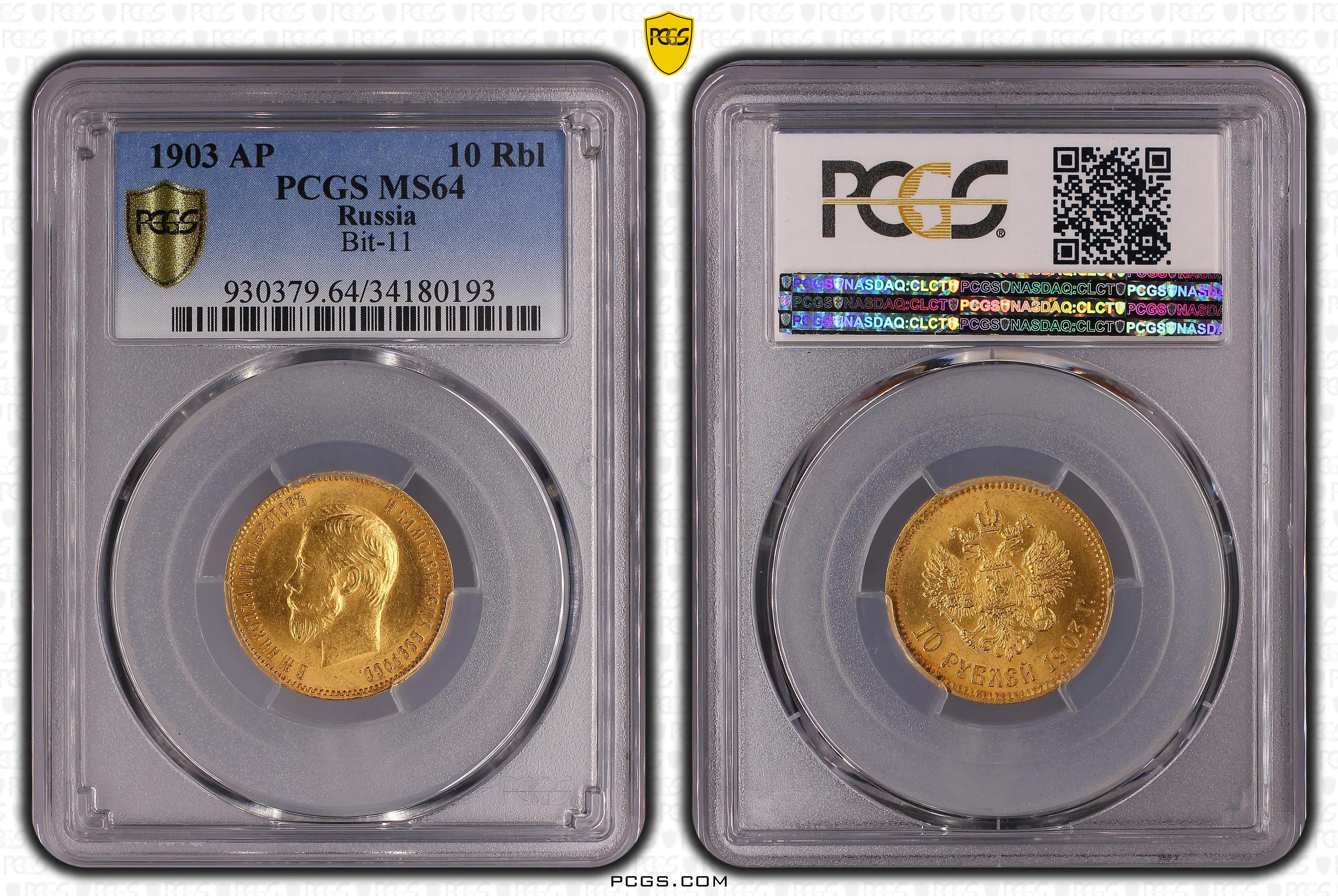 1903 AP 10 Rbl Bit-11 MS64 Certification #34180193, PCGS #930379