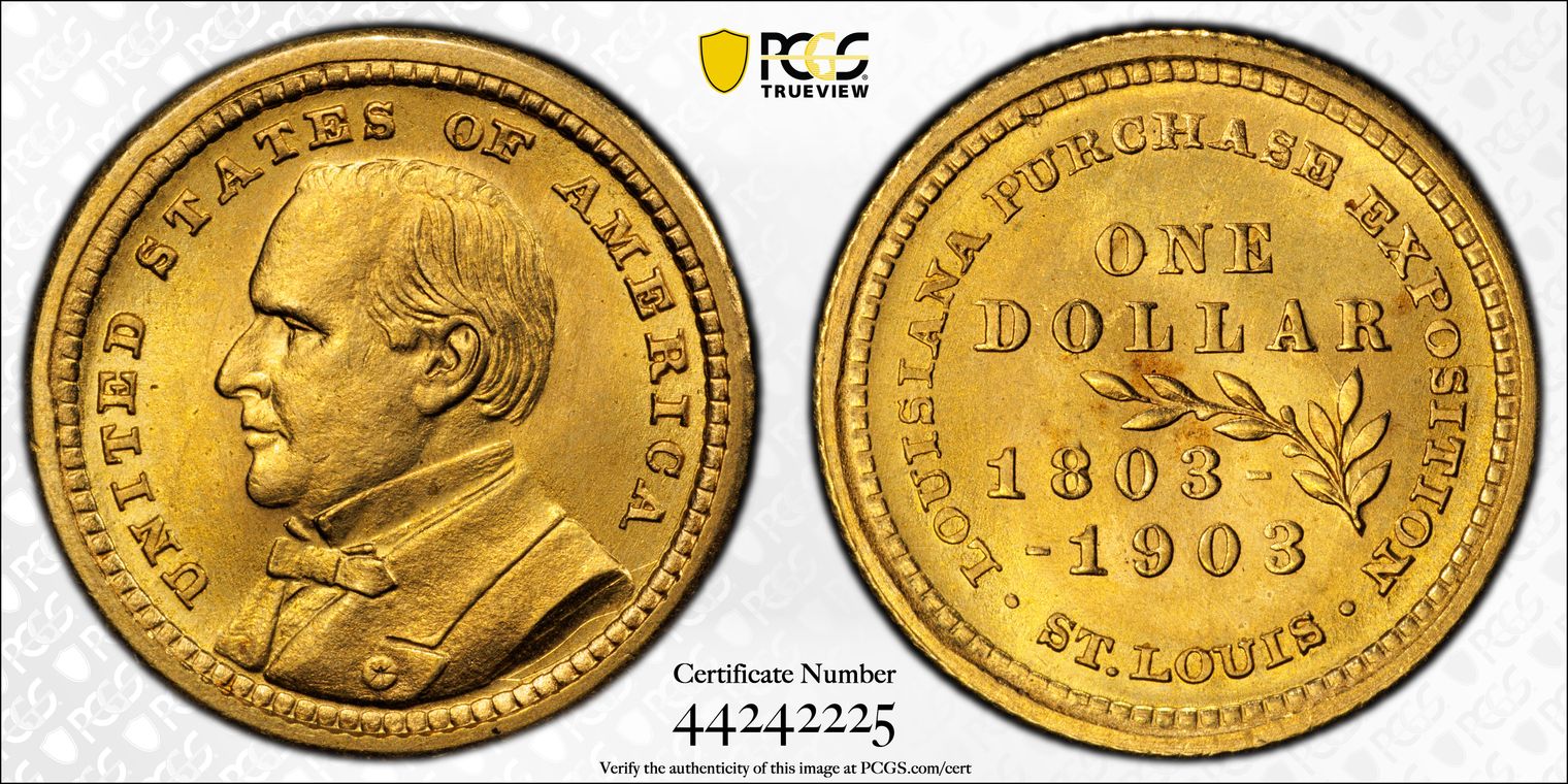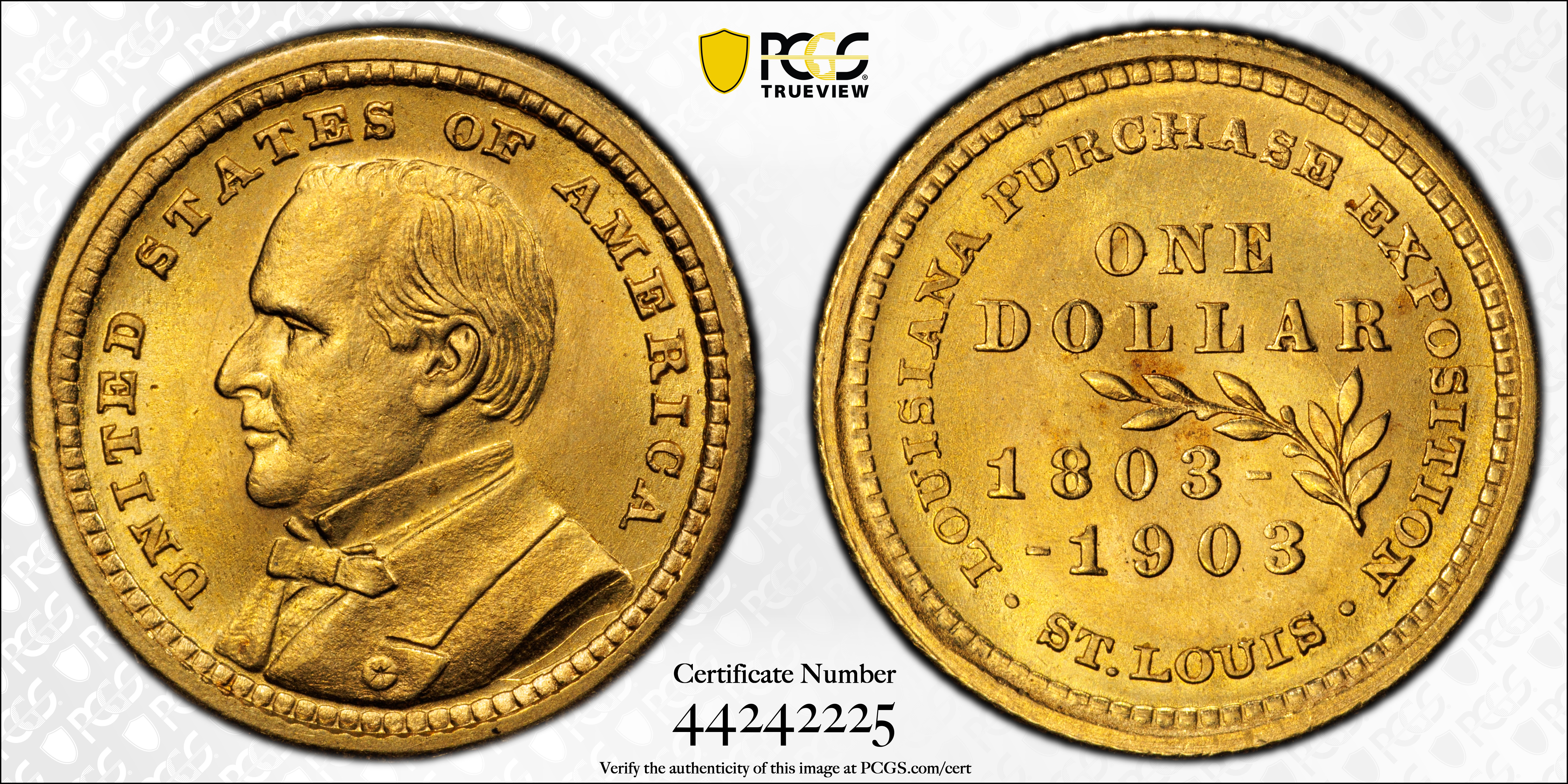 1903 G$1 LA Purchase, McKinley MS65 Certification #44242225, PCGS #7444