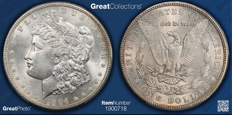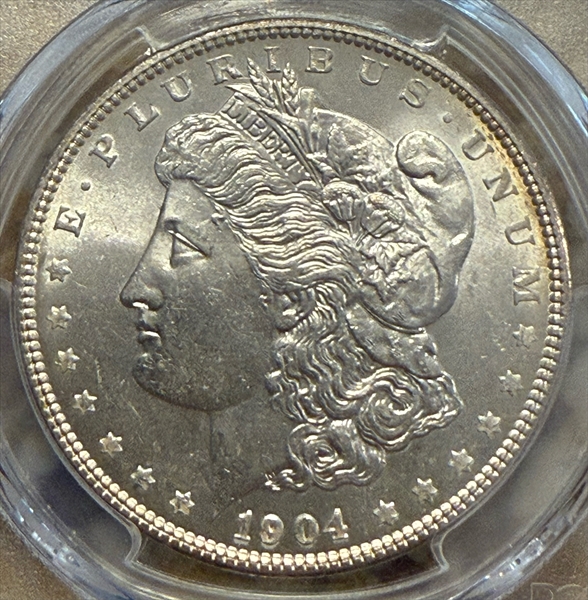 The typically encountered 1904 dollar will win no awards for quality. Many have indifferent lustre, and the striking is apt to be average (even after allowing for the normal feathers on the C-4 reverse). The majority of pieces are in lower grade levels such as MS-60, 61, and 62.