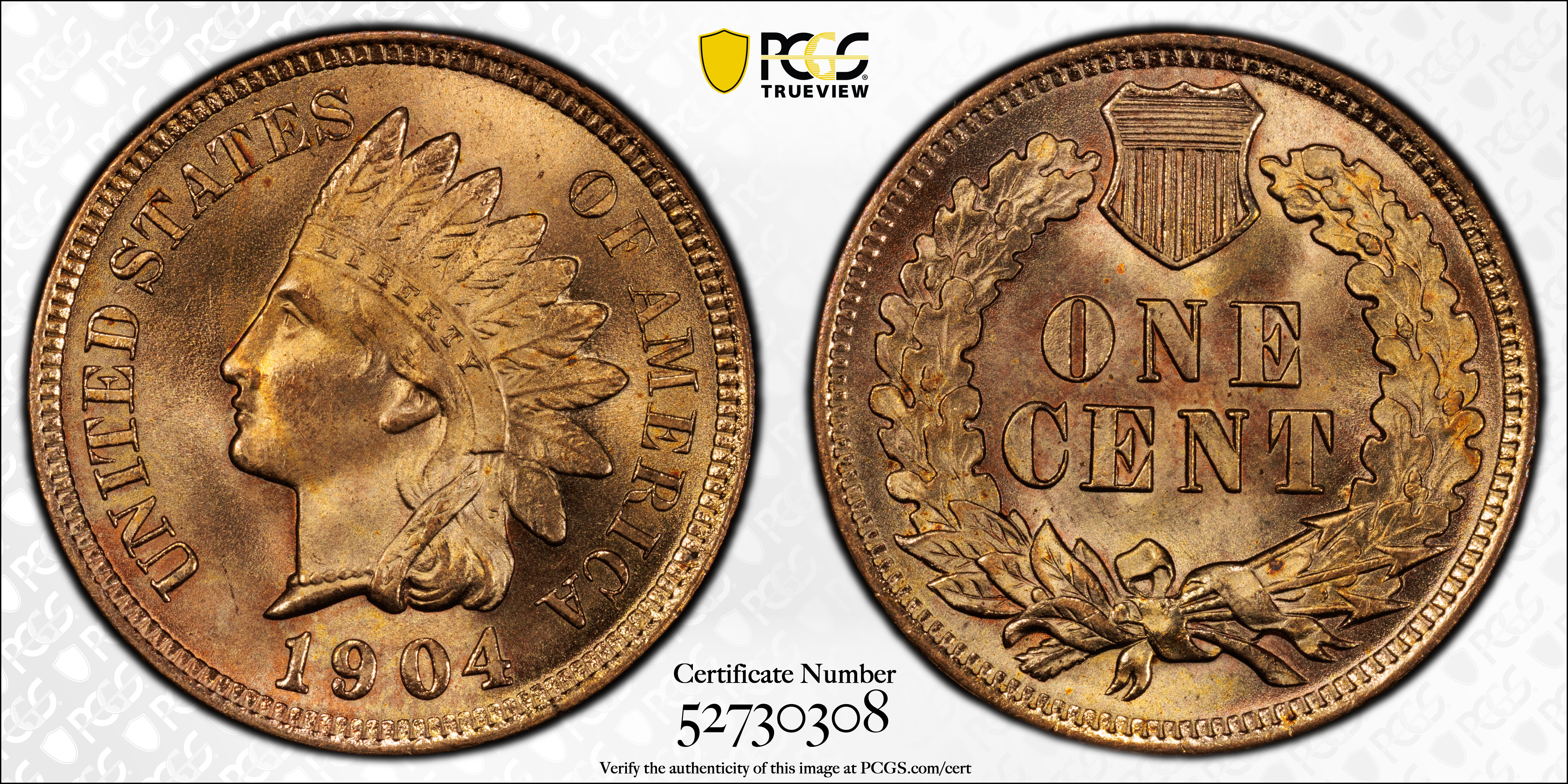 1904 1C, RD MS66RD Certification #52730308, PCGS #2219