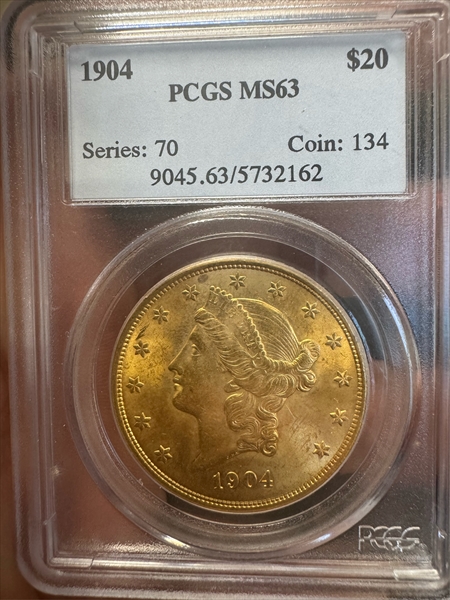 1904 $20 MS63 Certification #05732162, PCGS #9045