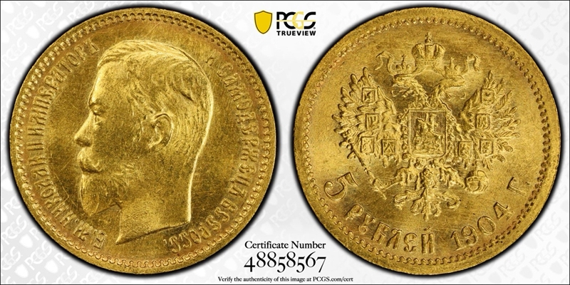 1904 АР 5 Rbl Bit-31 MS66 Certification #48858567, PCGS #930270