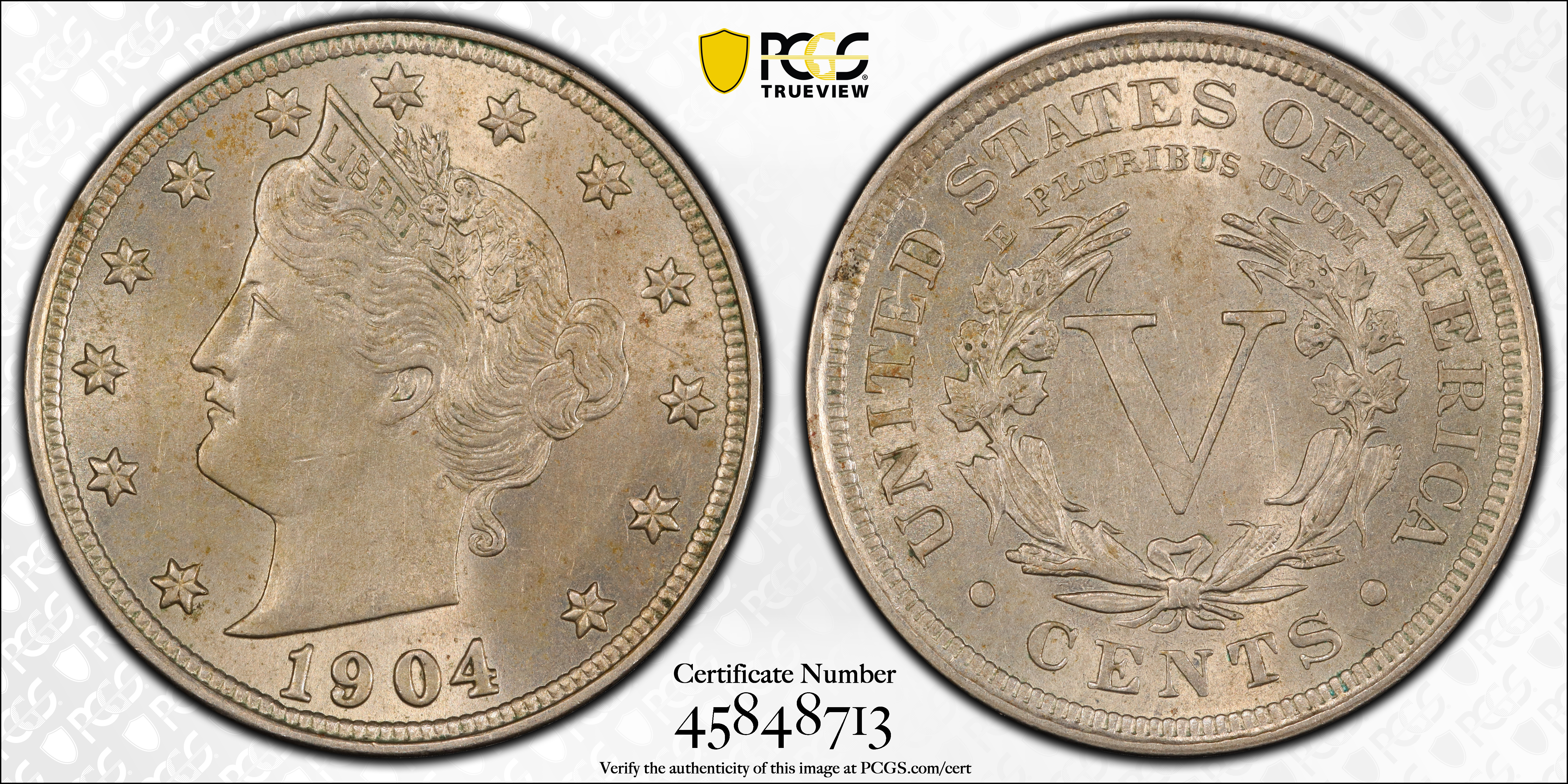 1904 5C AU58 Certification #45848713, PCGS #3865