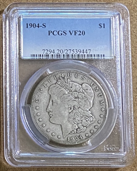 1904-S $1 VF20 Certification #27539447, PCGS #7294