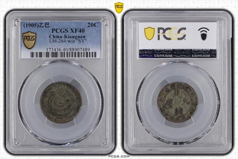 (1905)乙巳 20C LM-264 w/o "SY" XF40 Certification #88907489, PCGS #173436