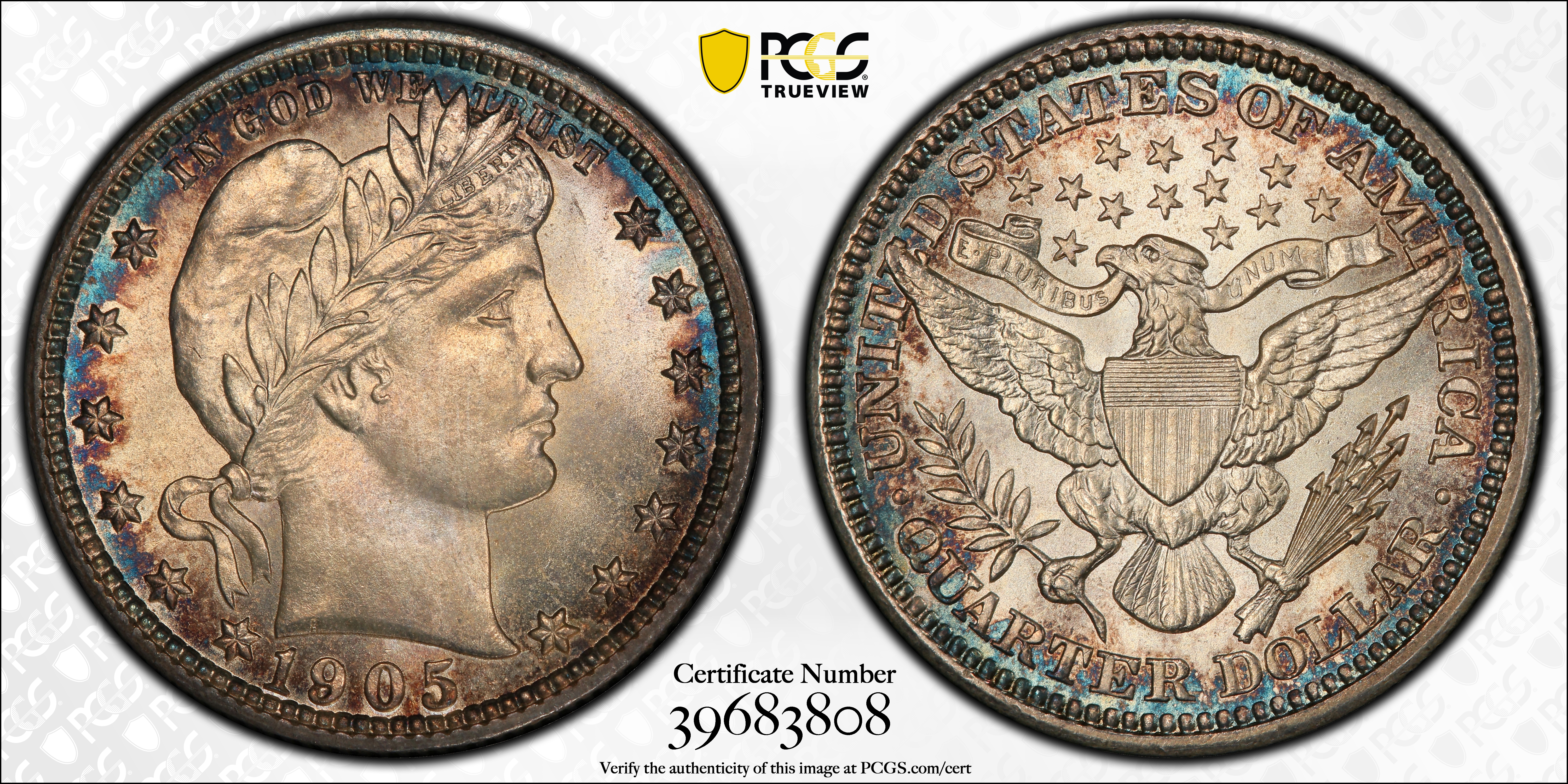 1905 25C MS66 Certification #39683808, PCGS #5639