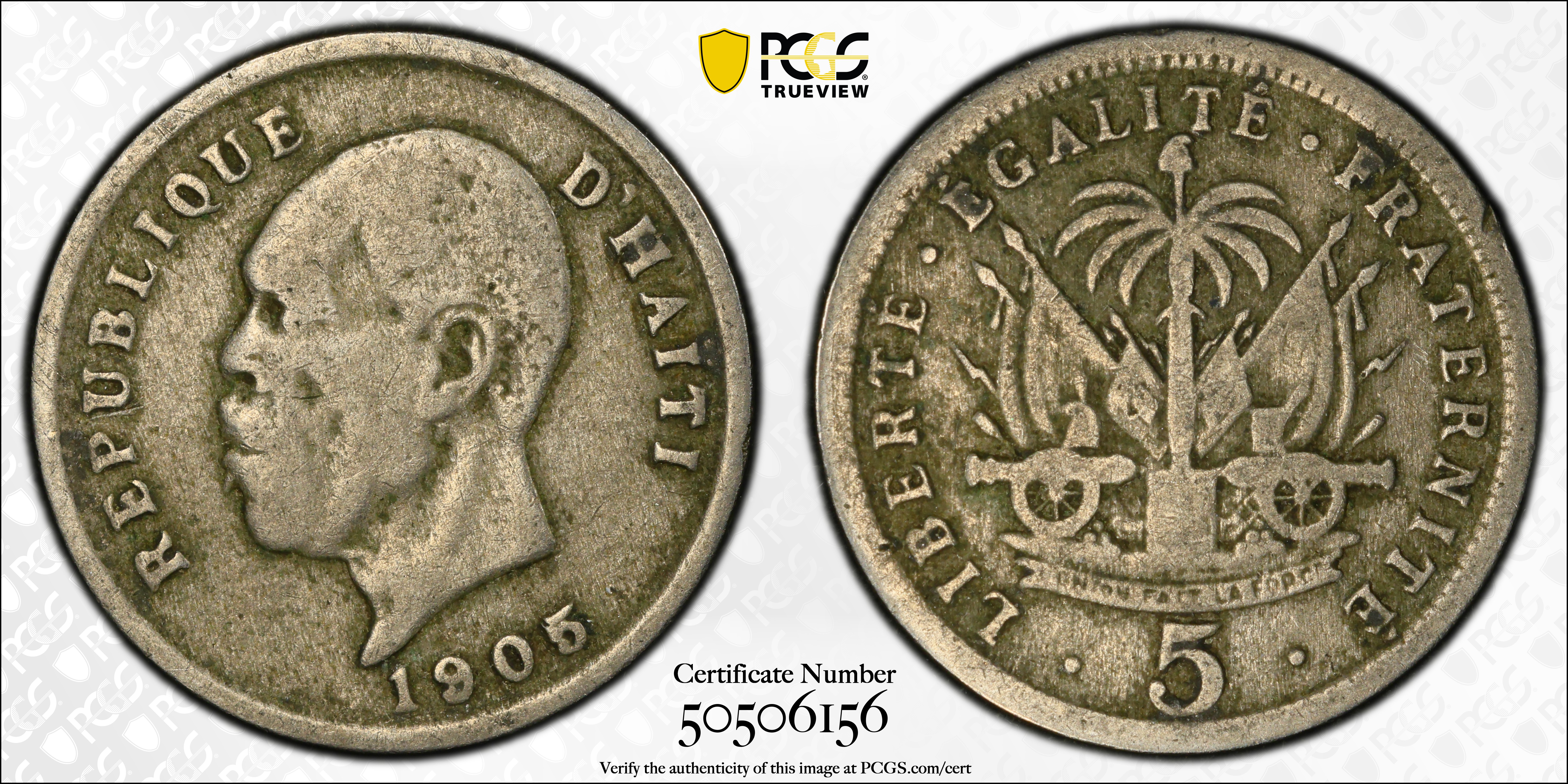 1905 5C F12 Certification #50506156, PCGS #151290