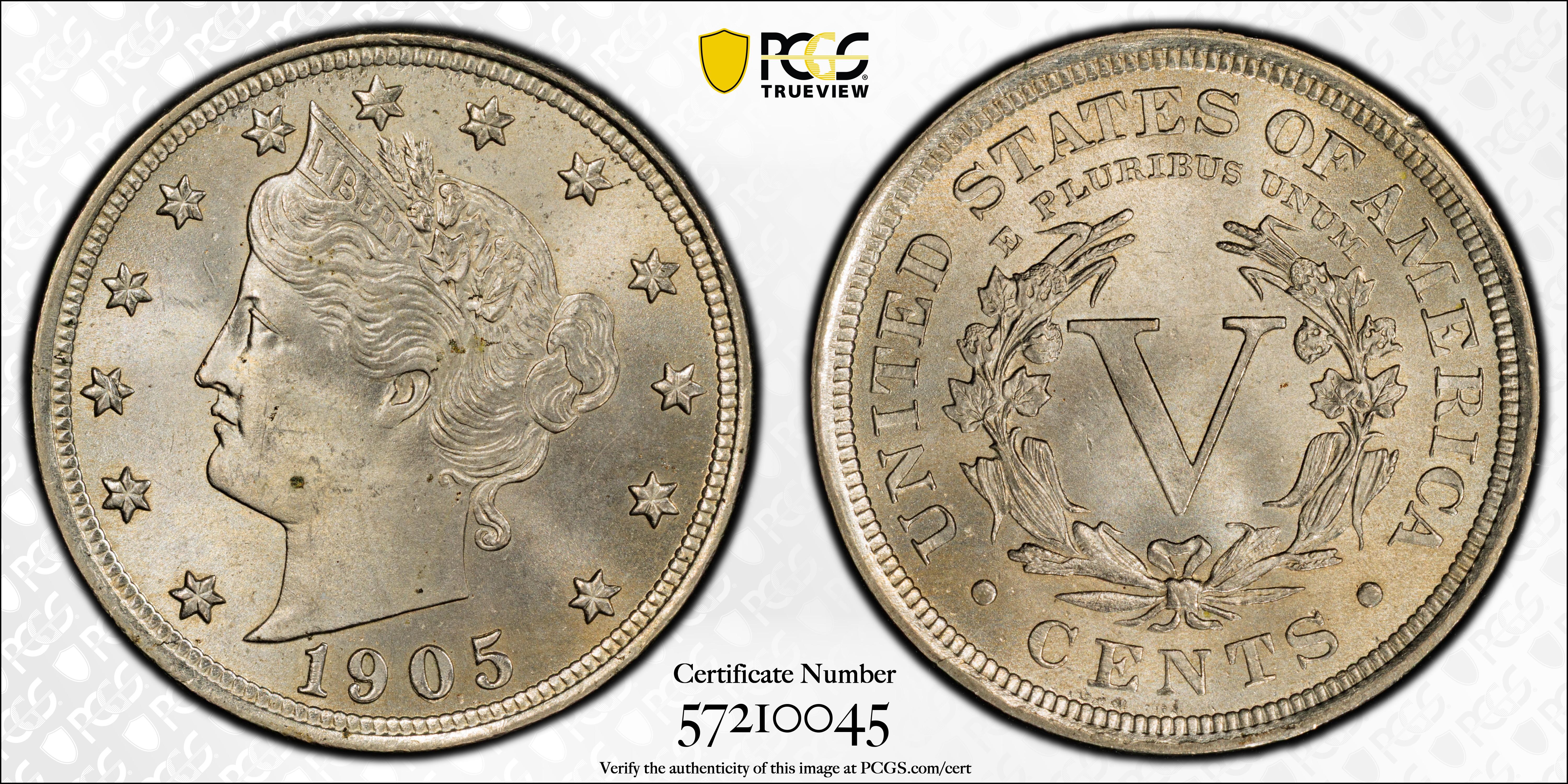 1905 5C MS63 Certification #57210045, PCGS #3866