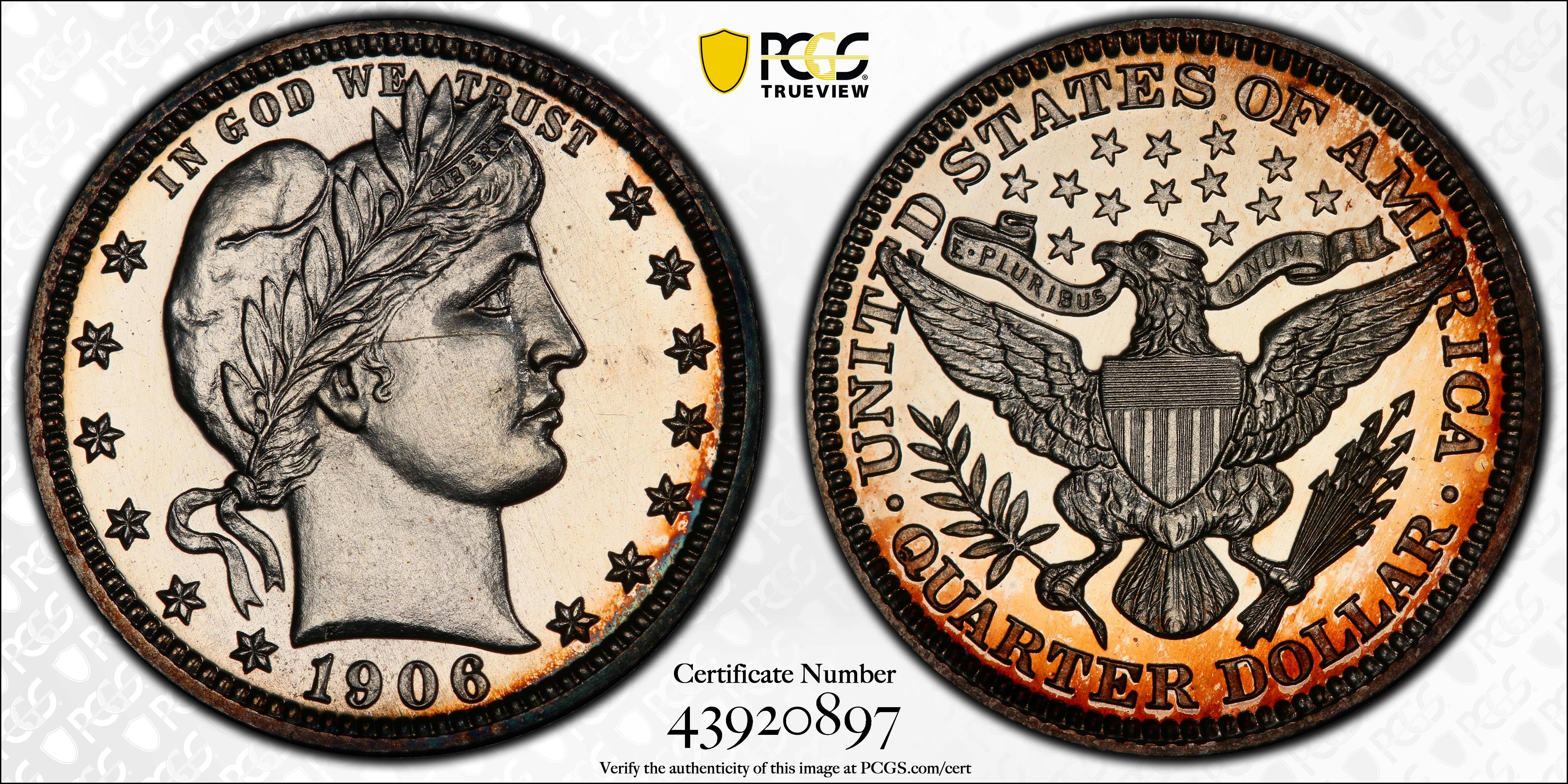 1906 25C PR61 Certification #43920897, PCGS #5692