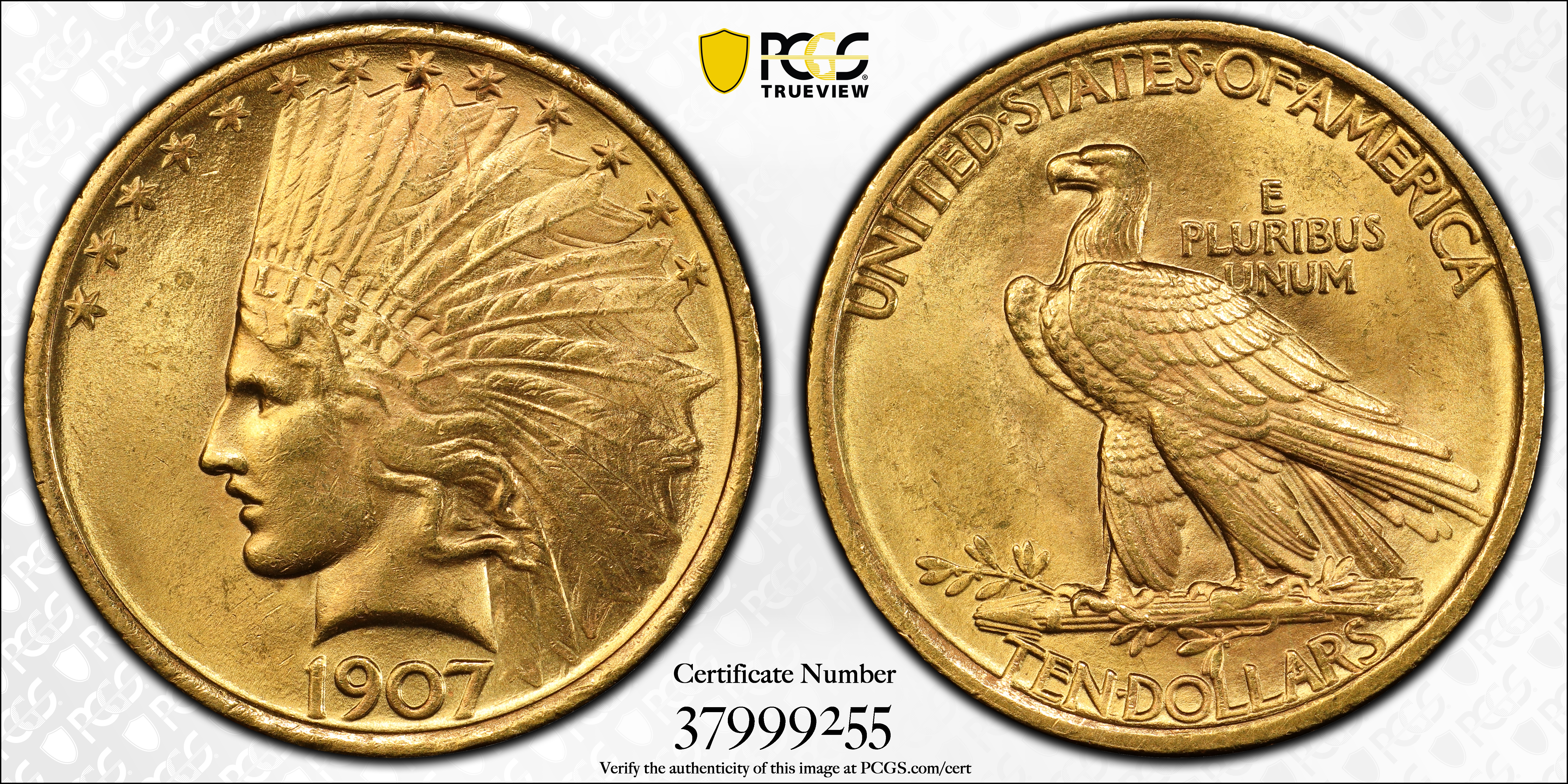 1907 $10 Indian MS64 Certification #37999255, PCGS #8852