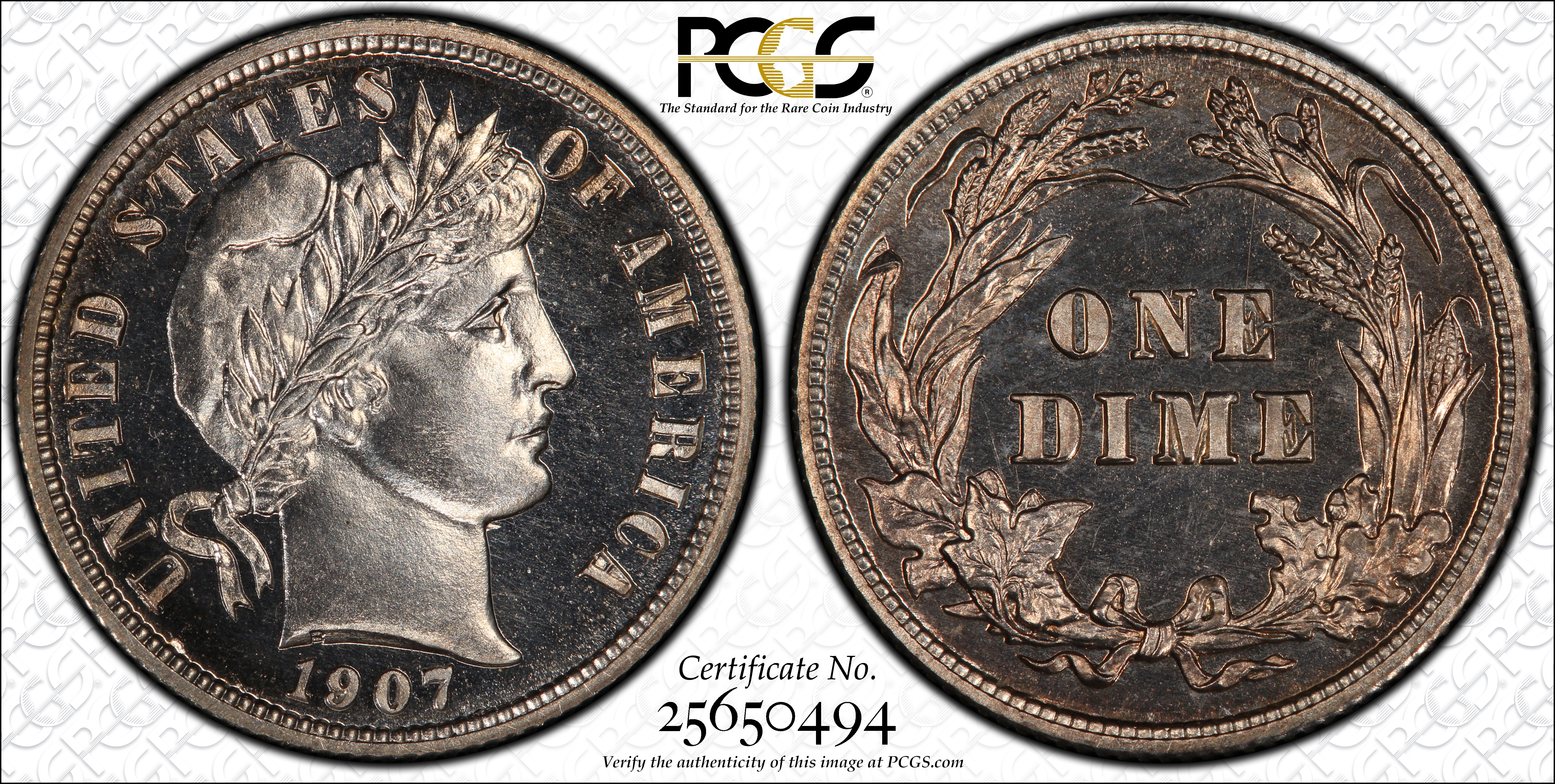 1907 10C PR66 Certification #25650494, PCGS #4891