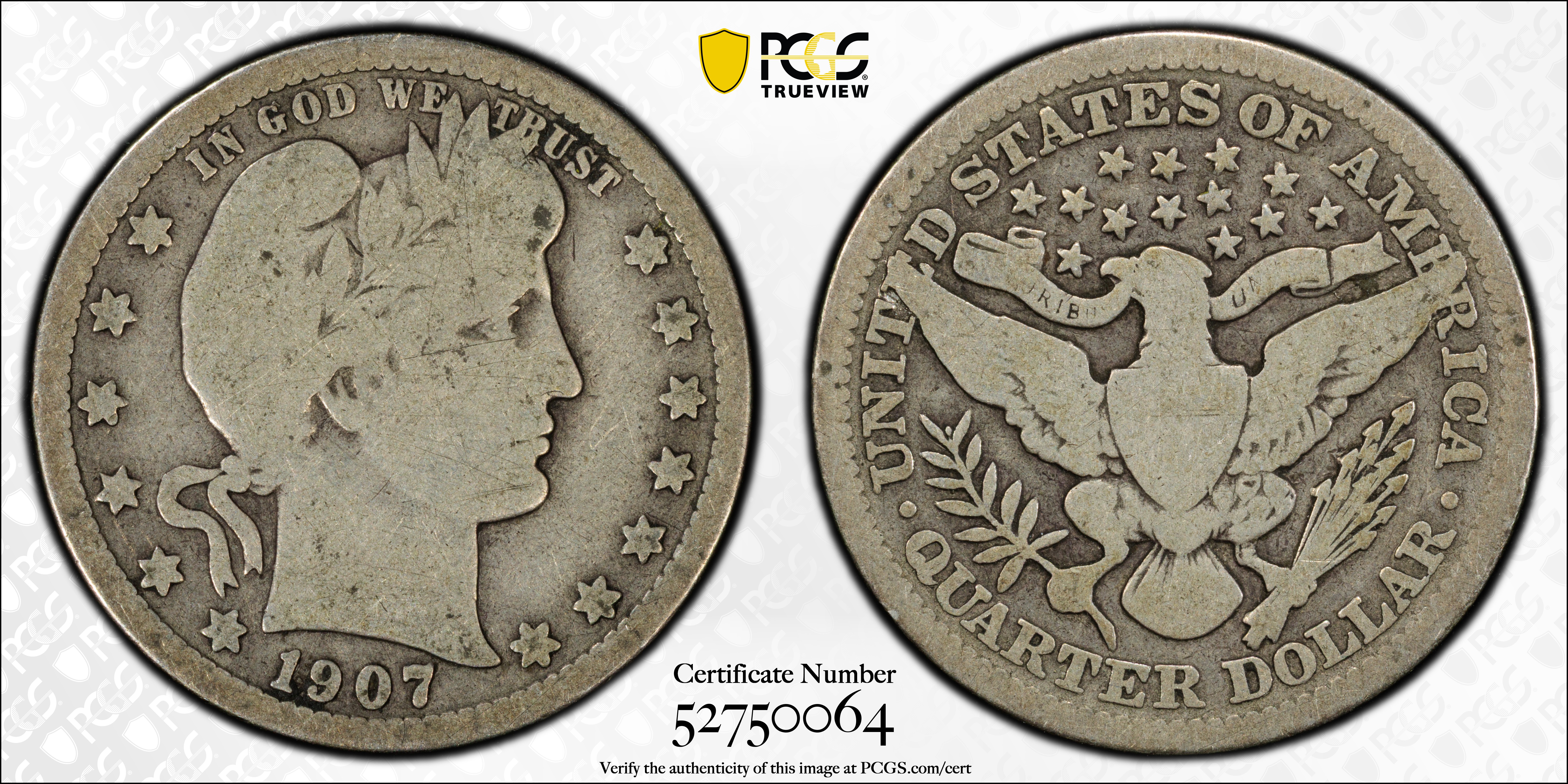 1907 25C G6 Certification #52750064, PCGS #5645