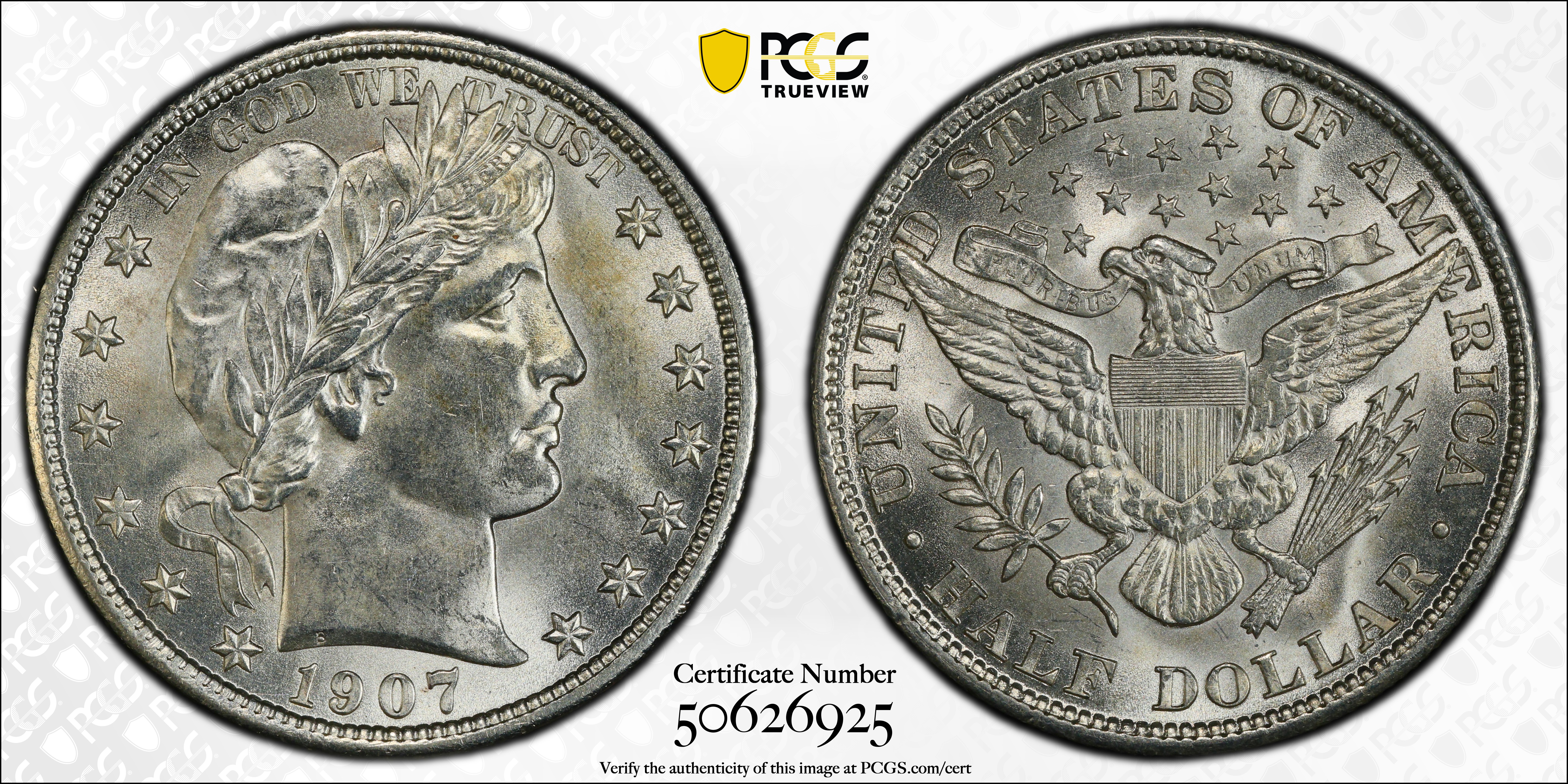 1907 50C MS63 Certification #50626925, PCGS #6508