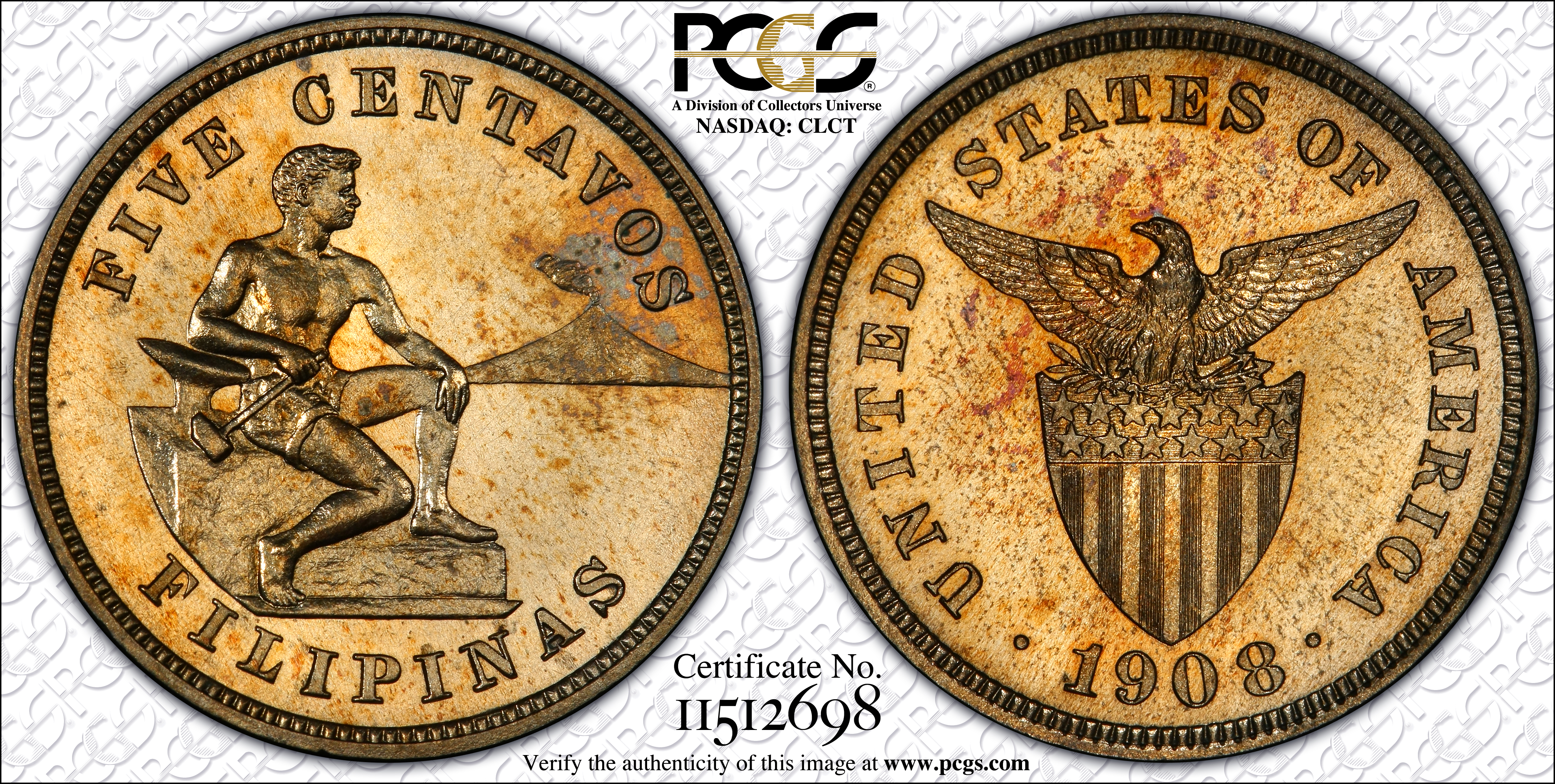 1908 5C PR64 Certification #11512698, PCGS #90221