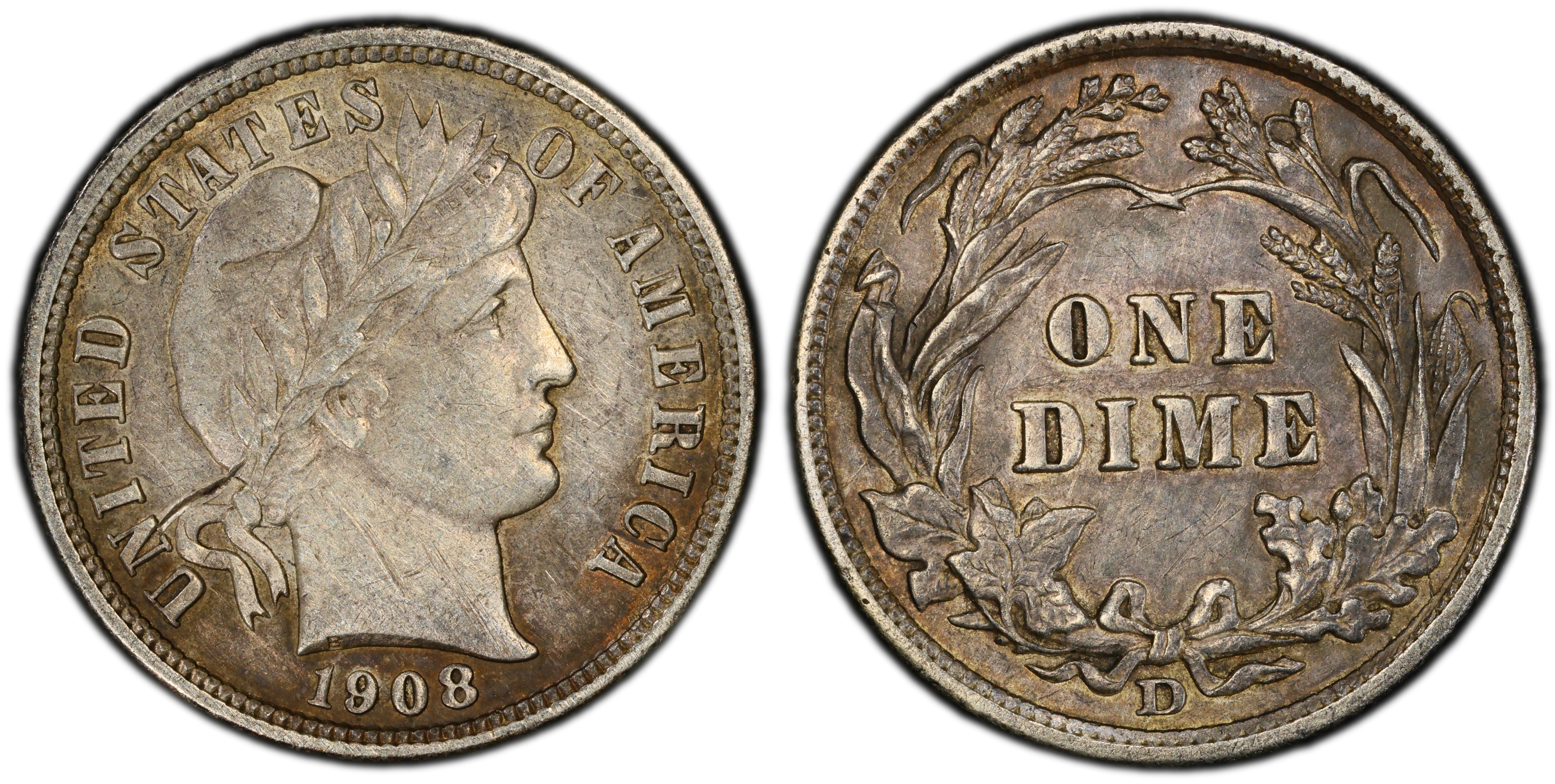 The 1908-D Dime is easy to obtain in most grades, including Mint State. As with most Barber Dimes, the typical grades are MS63 and MS64. However, in this case, there are quite a few Superb pieces that have survived. MS67's dominate the PCGS CoinFacts Condition Census, with MS67+ being the very best grade.