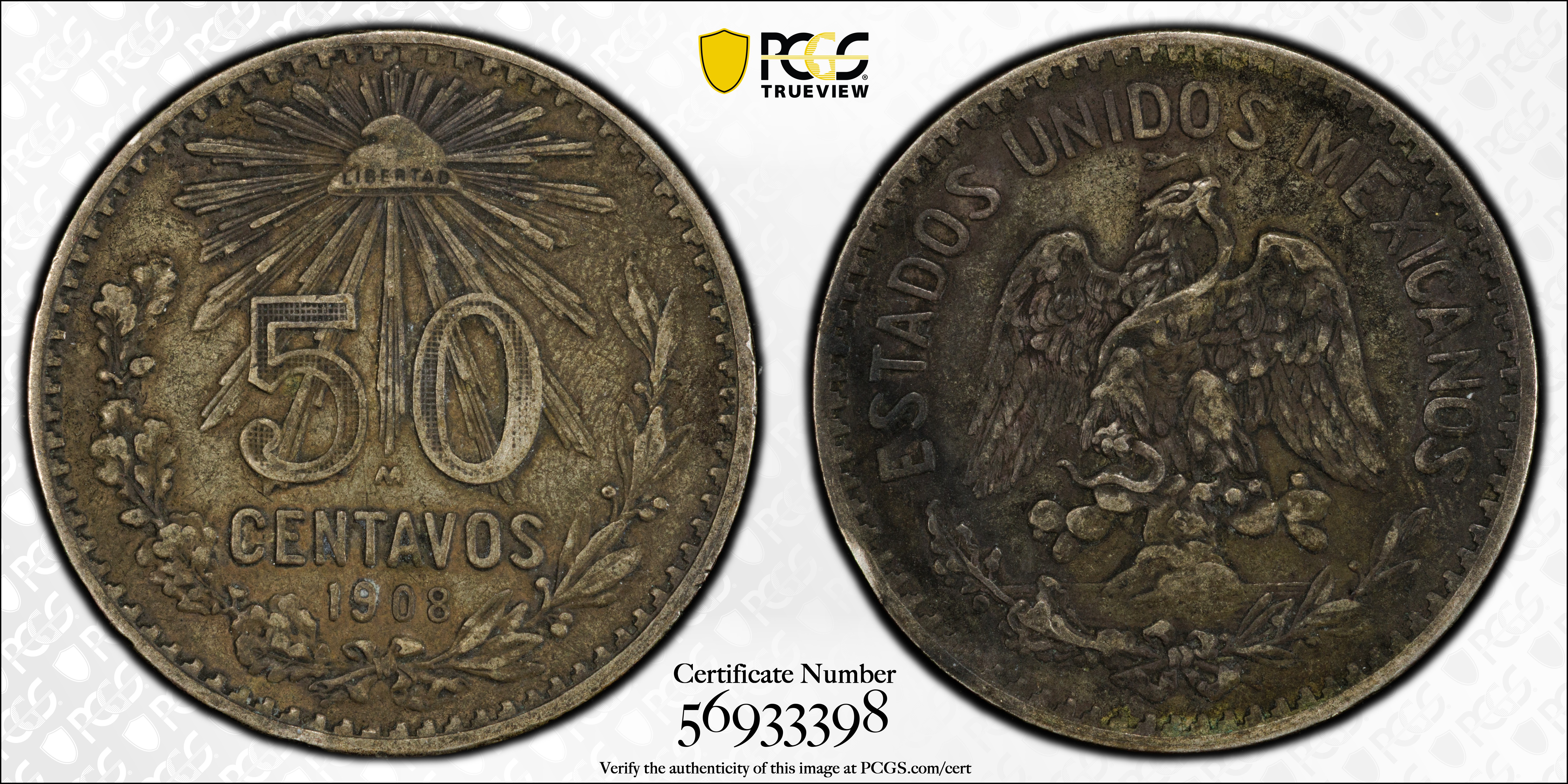 1908-M 50C XF40 Certification #56933398, PCGS #525665